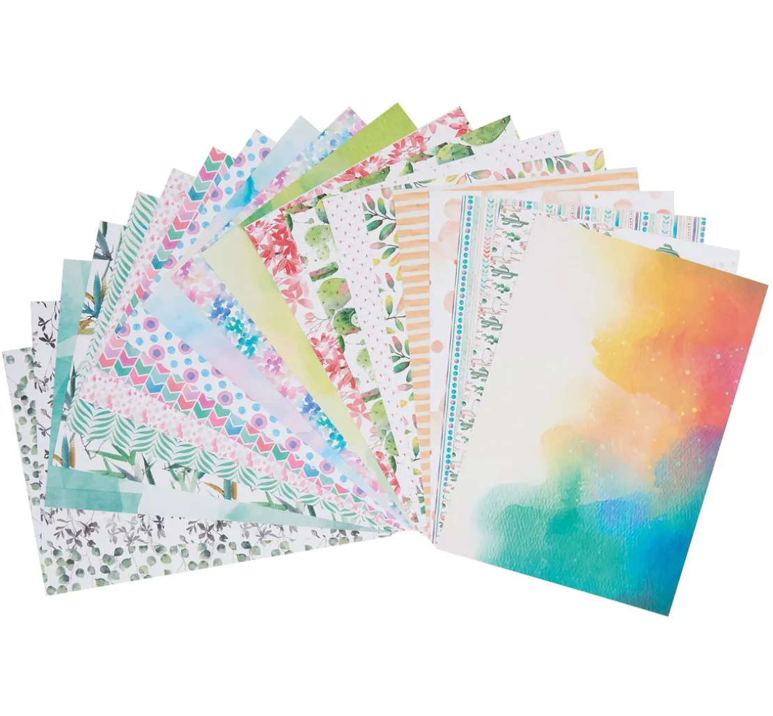 Dieses wundervolle Papier mit Aquarell-Motiven ist gut miteinander zu kombinieren. Die harmonischen Farben sind hervorragend abgestimmt und eignen sich für Bastelarbeiten wie Geschenkschachteln, Glückwunschkarten, Lesezeichen und vieles mehr. Kombinieren Sie die einzelnen Motive und Sie erhalten im Handumdrehen zauberhafte Ergebnisse.