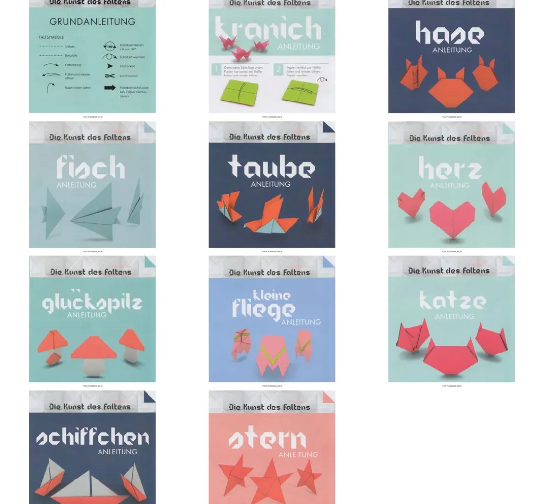 Mit dem Inhalt dieser schicken Designdose können Sie ganz einfach viele tolle Figuren und Formen nachfalten. Die fertigen Faltkunstwerke eignen sich zum Beispiel besonders gut für die Kartengestaltung oder zum Verzieren von Geschenkverpackungen. Um tolle Kontraste zu erhalten, können die bunten aufeinander abgestimmten Designs auch mit einfarbigen Papieren kombiniert werden. Origamifalten – ein Spaß für jede Altersgruppe!