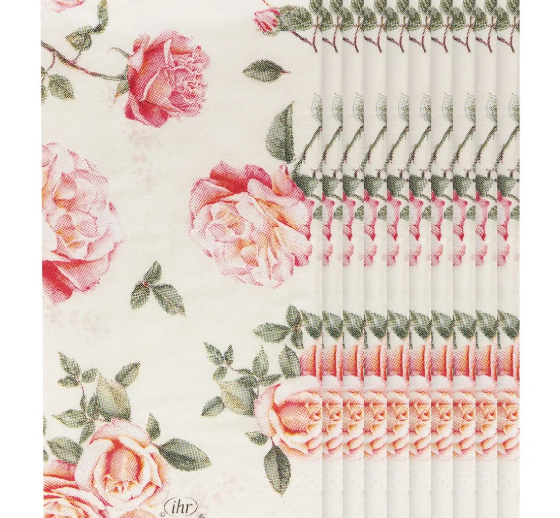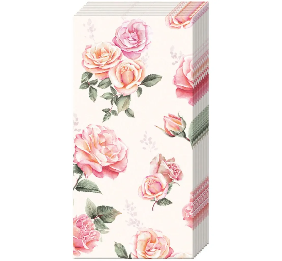Entdecke die Schönheit des Frühlings mit den Papiertaschentüchern „Roses“. Das zauberhafte Rosenmotiv erstreckt sich über die gesamte Serviette und bringt eine frische, blumige Atmosphäre in dein Zuhause. Mit der Serviettentechnik verwandelst du alltägliche Gegenstände wie Möbel oder Schubladen in einzigartige Kunstwerke. Einfach Serviettenkleber und Lack verwenden, um das Motiv auf Glas, Keramik oder Metall zu übertragen. Lass deiner Kreativität freien Lauf und gestalte deine Welt neu. Hol dir jetzt die Inspiration!