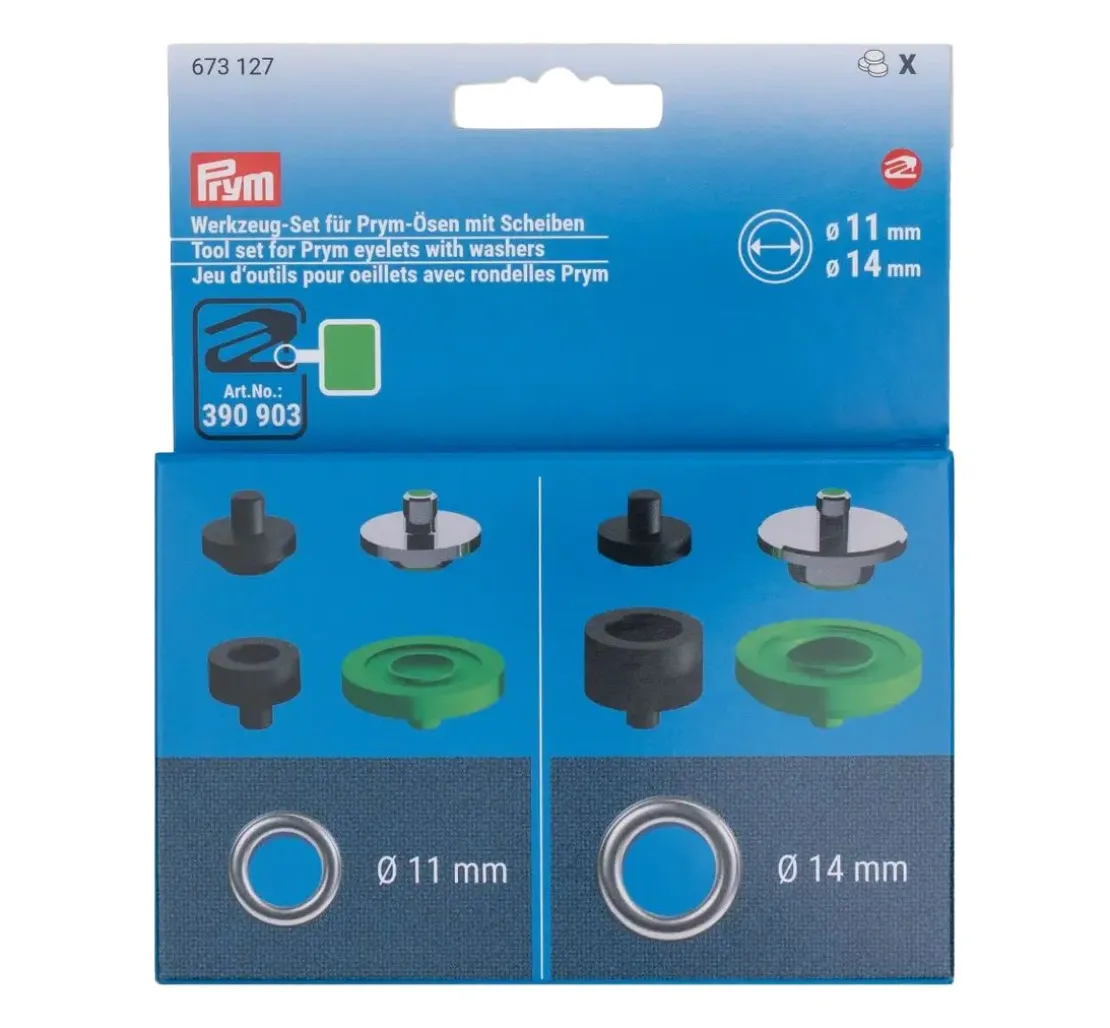 Du suchst nach einem praktischen Werkzeugset, um Prym Ösen mit Scheiben in Ø 11 und 14 mm zu verarbeiten? Dann ist das Prym Werkzeugset genau das Richtige für dich! Mit dem Set erhältst du 4 Verarbeitungswerkzeuge und eine ausführliche Step-by-Step-Anleitung, die dir eine gelingsichere Anwendung garantiert.