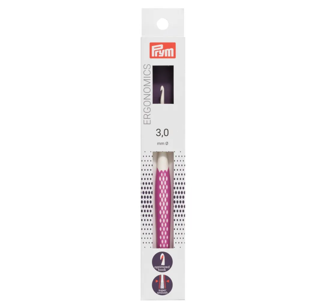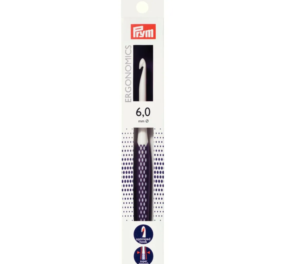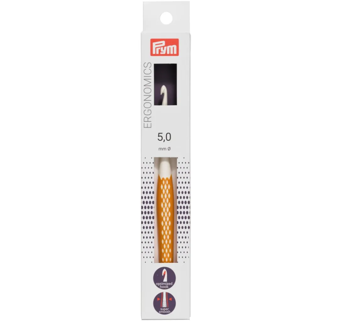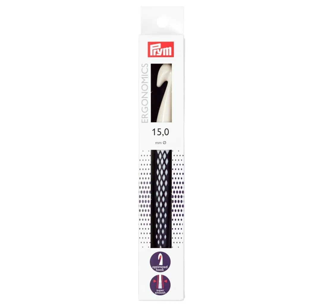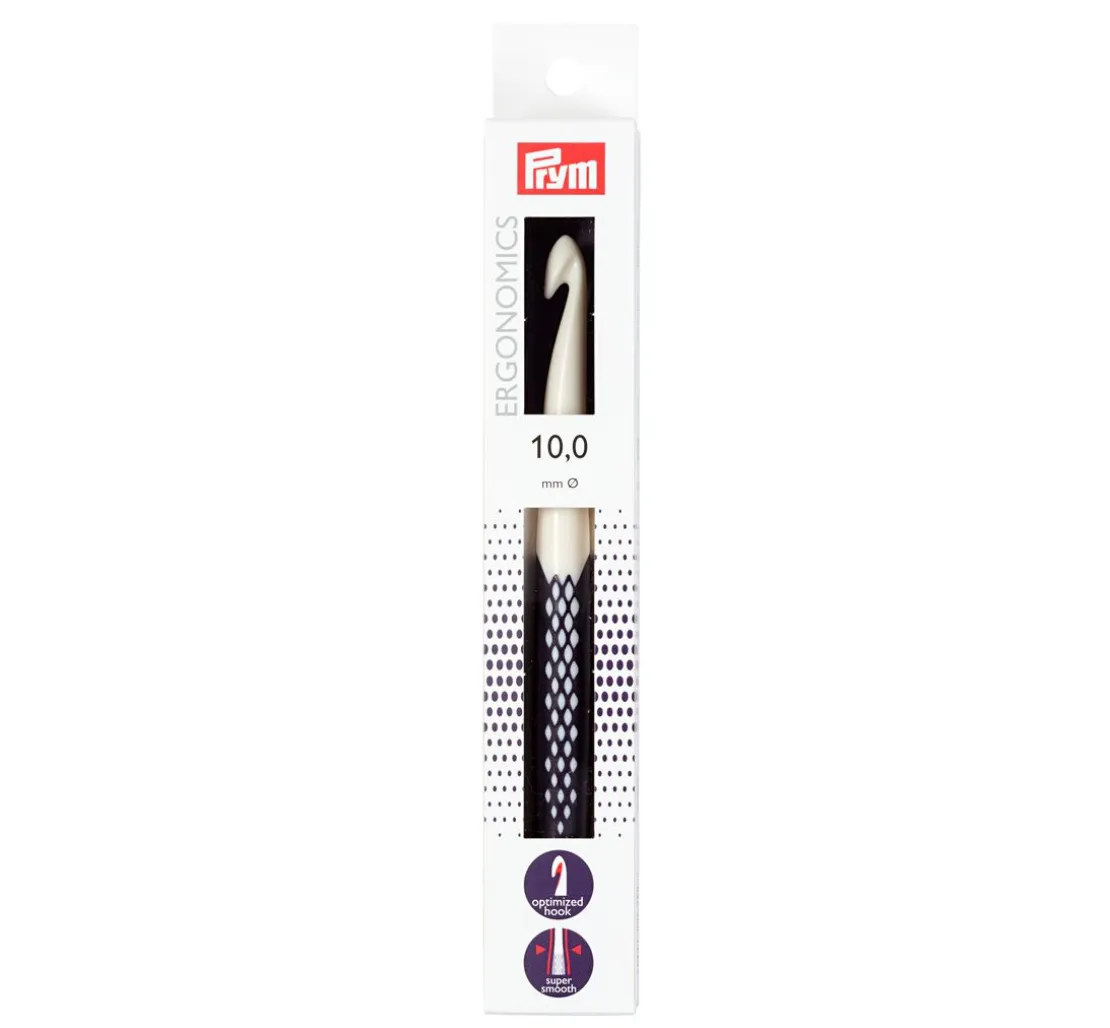 Die innovative Wollhäkelnadel Prym „Ergonomics„ hat eine Länge von ca. 16,5 cm. Diese Häkelnadel steht für einfaches und gelenkschonendes Handarbeiten. Das Material ist aus hochwertigem Kunststoff, sie ist sehr leicht und liegt angenehm in der Hand.