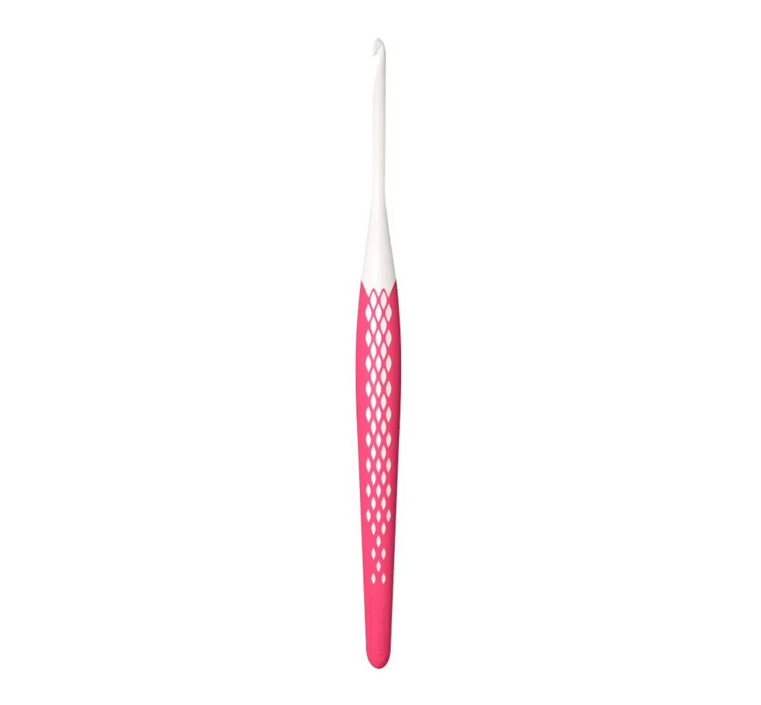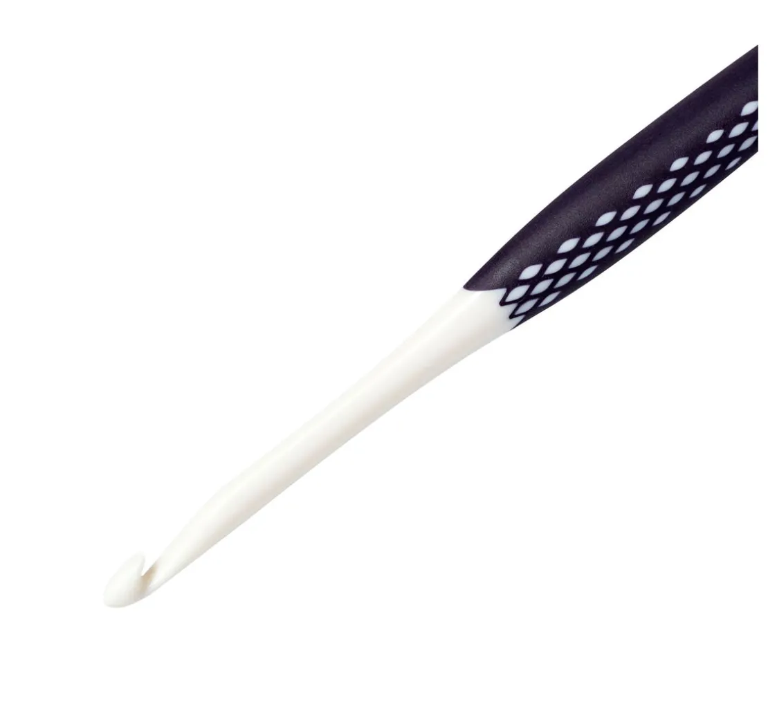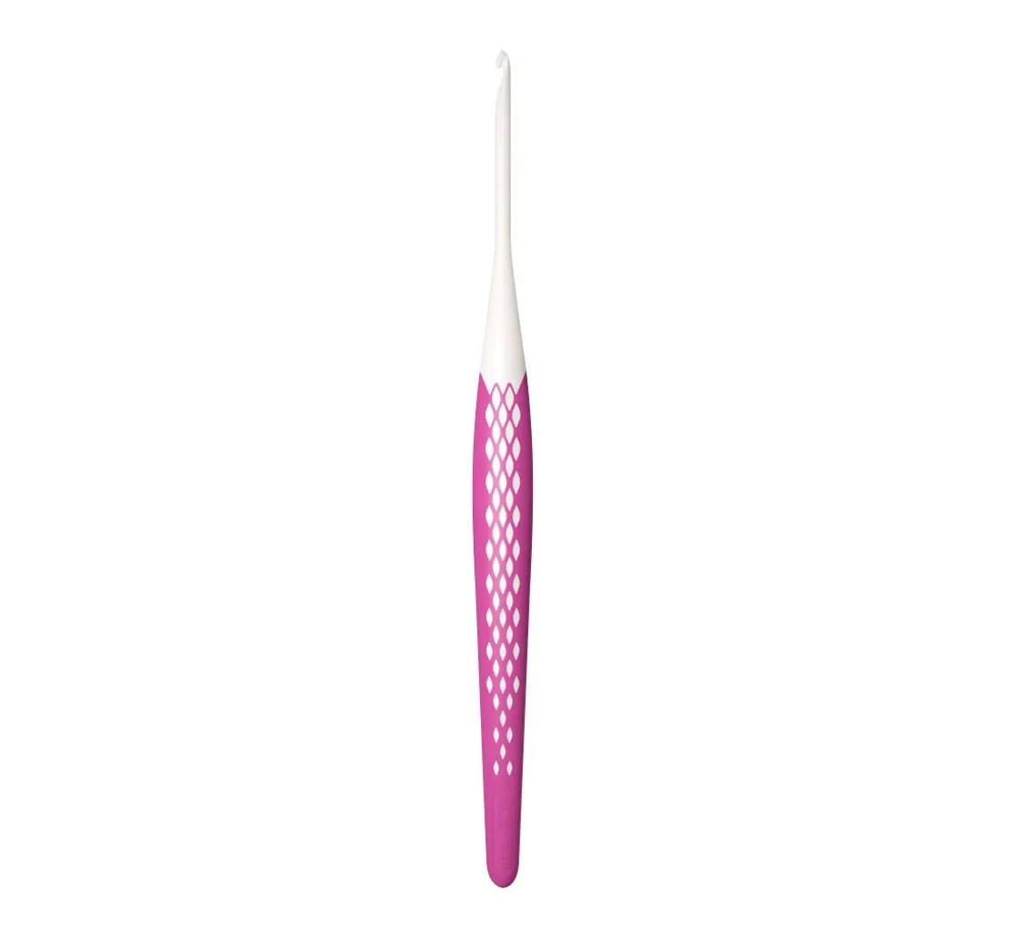 Bei dieser Häkelnadel gibt es nur einen Haken und der ist absolut glatt! Der hochglanzpolierte Schaft und Haken sorgen für leichtes Gleiten der Maschen. Der Griff der Nadel ist mit einem rutschfesten Kunststoff ummantelt und die ergonomische Form sorgt für ein ermüdungsfreies Arbeiten. Dieses Handarbeitsprodukt sollte in keinem Handarbeitskorb fehlen.