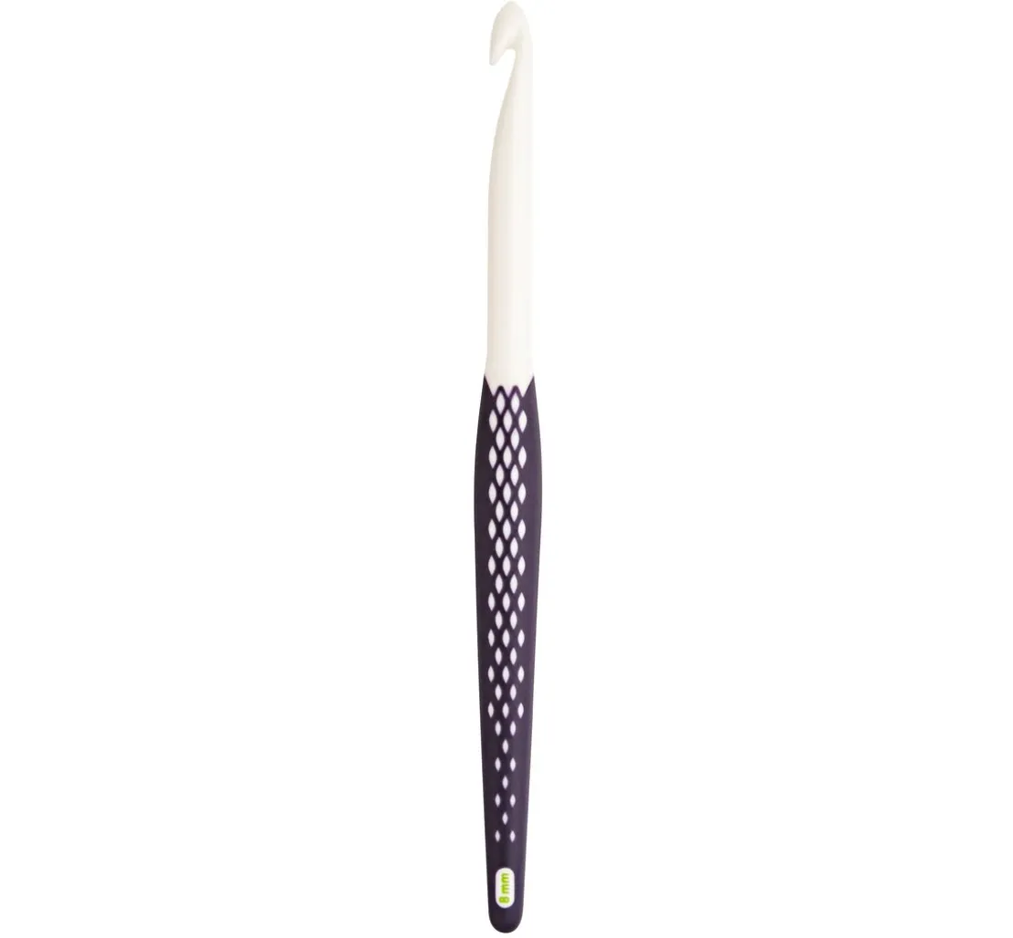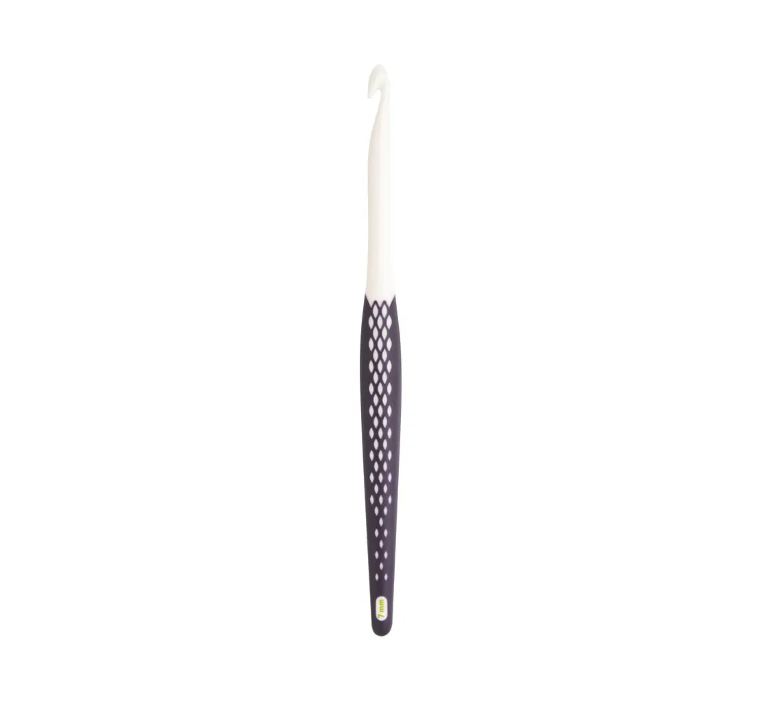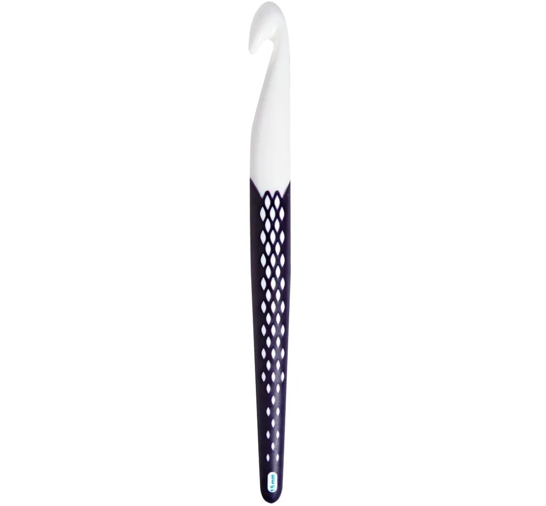 Bei dieser Häkelnadel gibt es nur einen Haken und der ist absolut glatt! Der hochglanzpolierte Schaft und Haken sorgen für leichtes Gleiten der Maschen. Der Griff der Nadel ist mit einem rutschfesten Kunststoff ummantelt und die ergonomische Form sorgt für ein ermüdungsfreies Arbeiten. Dieses Handarbeitsprodukt sollte in keinem Handarbeitskorb fehlen.