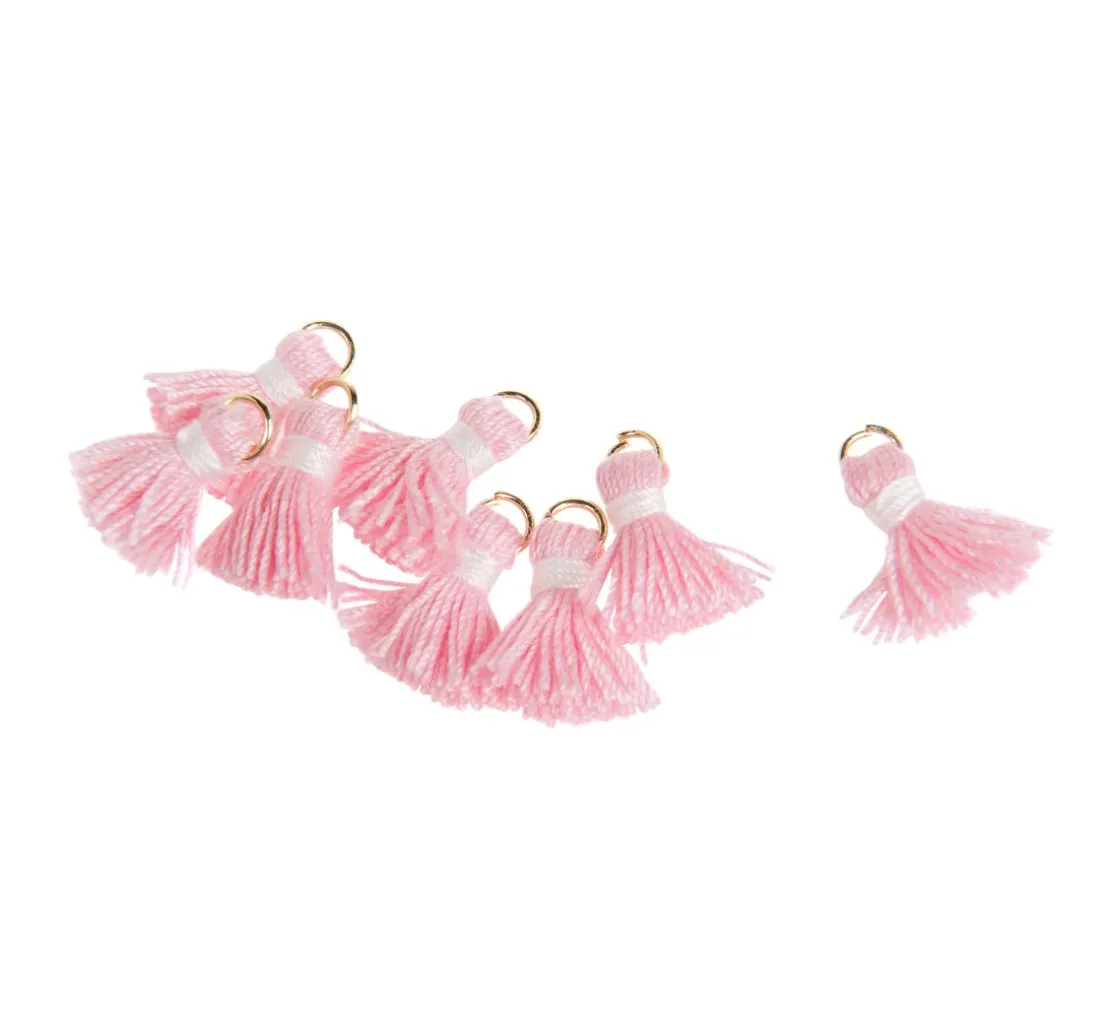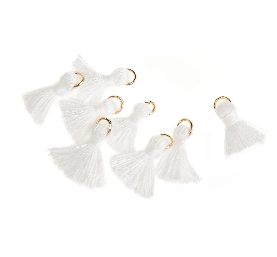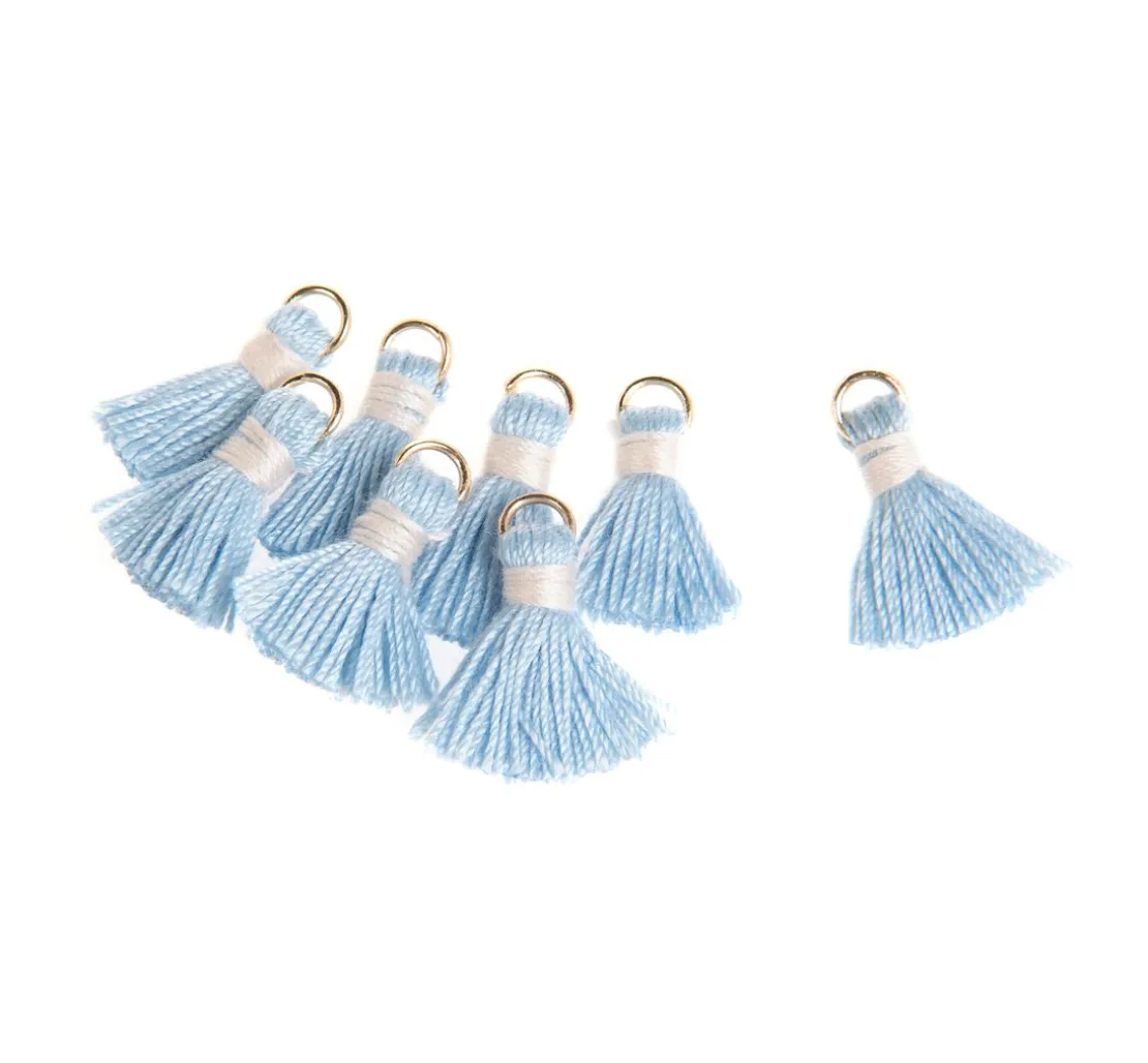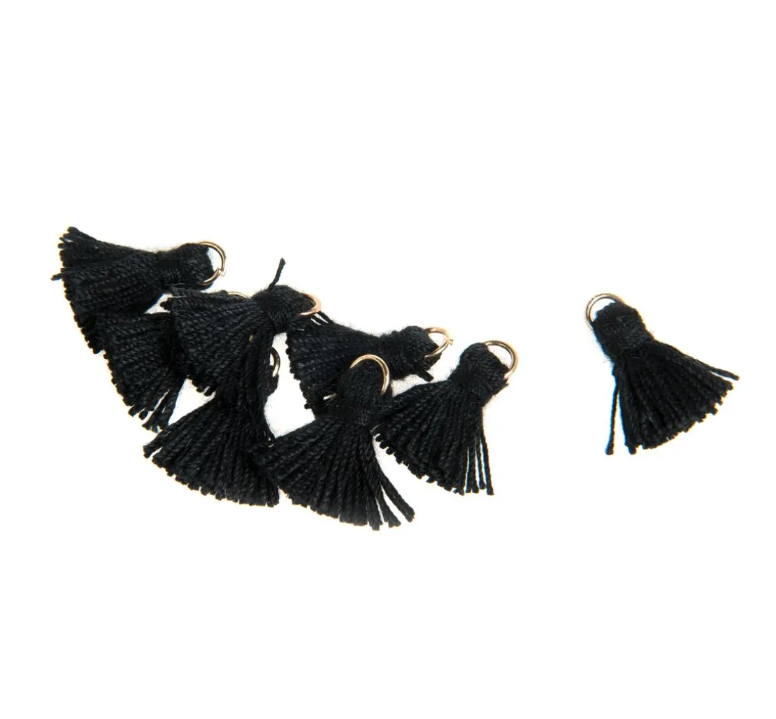 Mit den Quasten mit Öse kannst du spielend leicht deinen eigenen individuellen Schmuck gestalten. Die 8 kleinen Quasten haben eine Größe von 15 mm und bestehen aus seidig glänzenden Polyesterfäden. Ihre Metallöse ermöglicht es dir, sie an Armbändern, Ketten oder Ohrringen zu befestigen und so einzigartige Schmuckstücke zu kreieren.