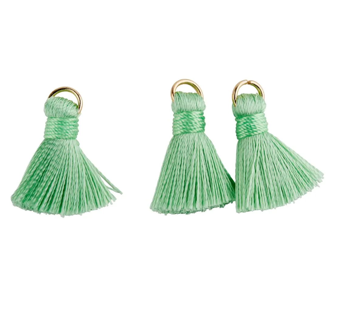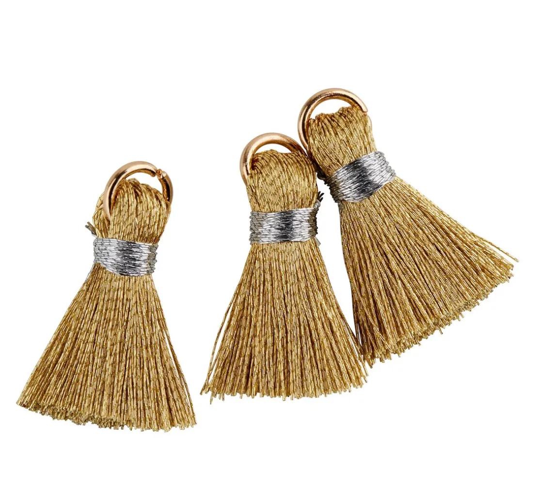 Drei Quasten mit tollen glänzenden Fäden in schicken Farbtönen und praktischer Öse zum Aufhängen oder Annähen. Die Quasten haben eine Größe von ca. 20 mm ohne Öse. Mit Öse beträgt die Größe ca. 23 mm.