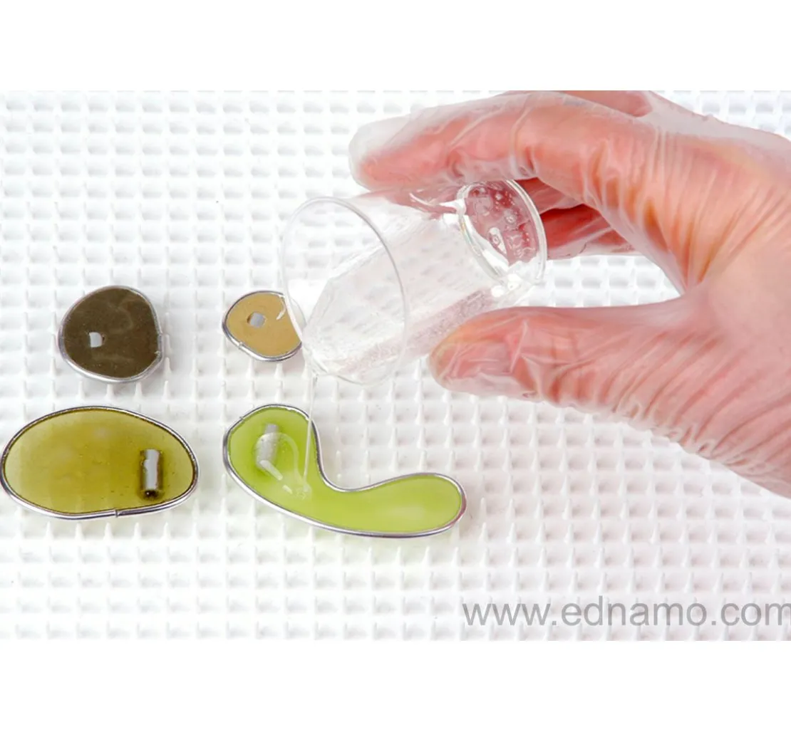 Mit dem Résin‚Pad lassen sich hervorragend Schmuckstücke wie Cabochons und Knöpfe herstellen.