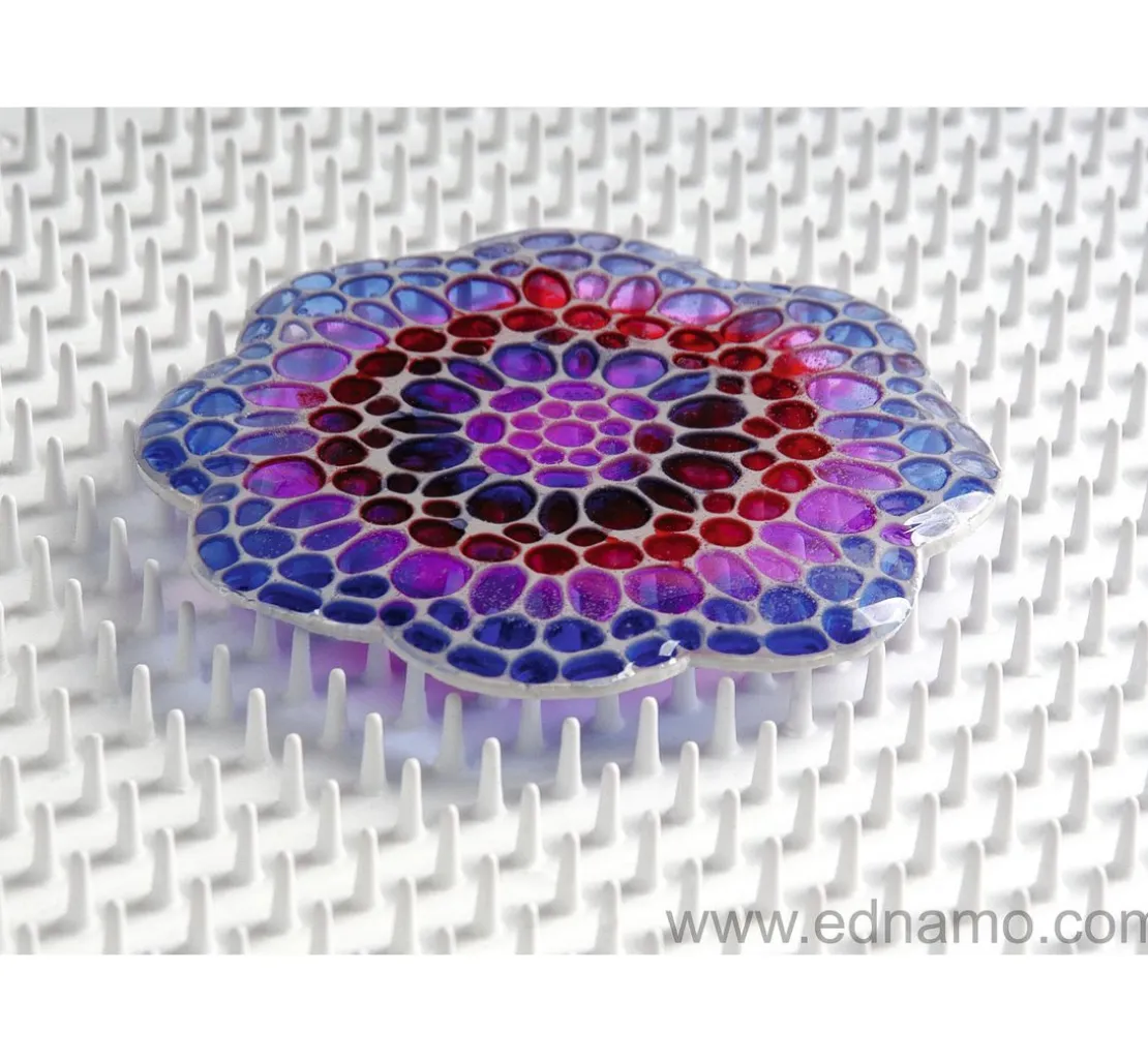 Die Noppen der Platt ermöglichen es, Ringe, Knöpfe, Anhänger aber auch z. B. Photopapier aufzulegen, um diese mit Harz und dem damit verbundenen Hochglanzeffekt und einem gewölbtem Rand mit 3D-Effekt zu versehen. Durch die Noppen des Pads läuft überschüssiges Harz einfach vom Schmuckstück, ohne es an der Unterseite zu verkleben oder einen unschönen Rand zu hinterlassen. Ein mühseliges Nacharbeiten ist damit nicht mehr notwendig.
