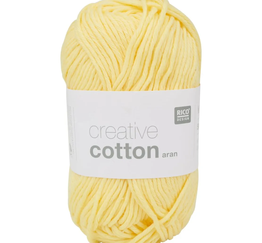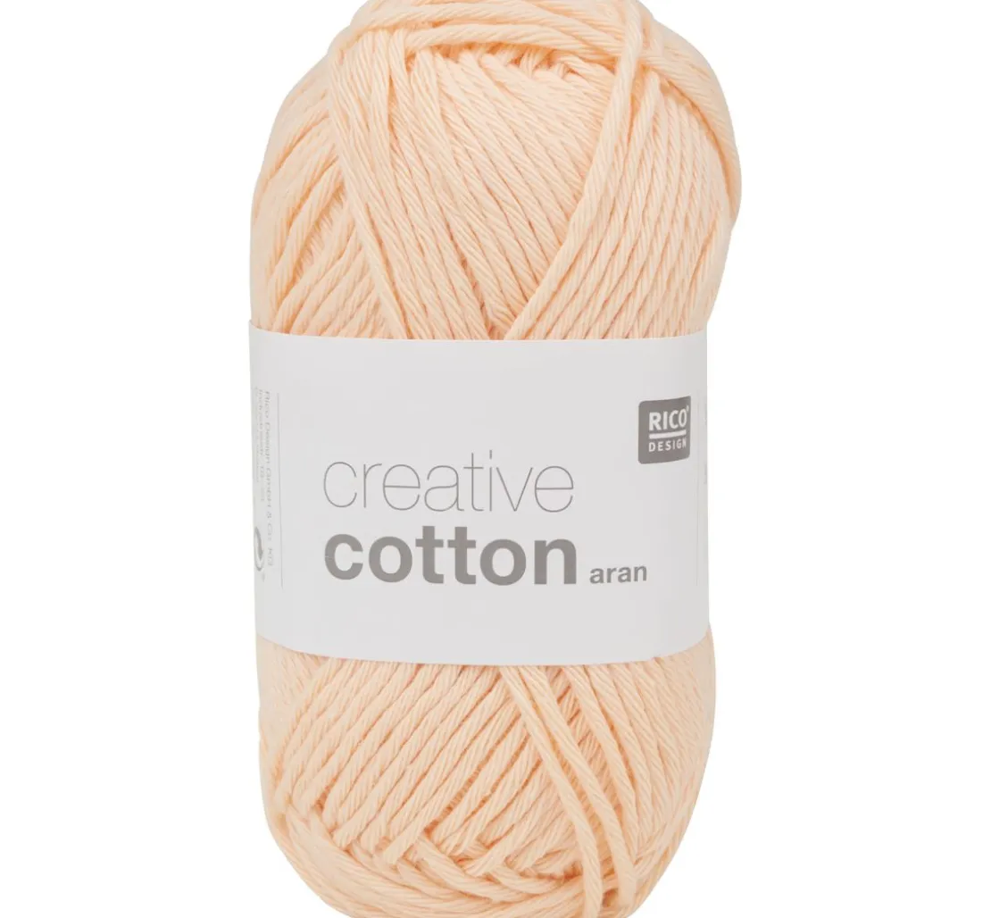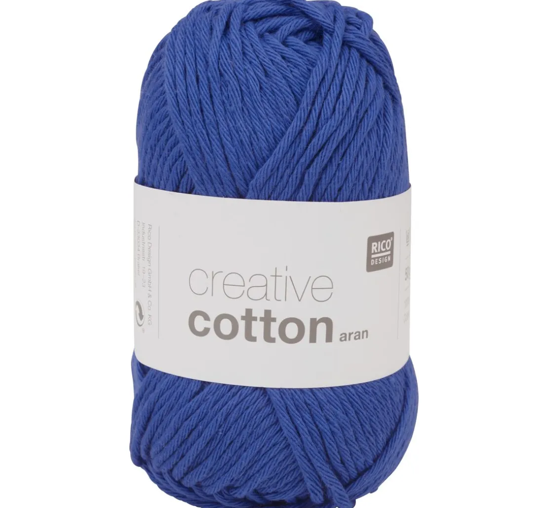 Das Garn Rico Design Creative Cotton aran ist ca. 85 m lang und ca. 50 g schwer. Es besteht zu 100 % aus Baumwolle und kann am besten mit einer Nadel in der Stärke 4 – 5 verarbeitet werden.