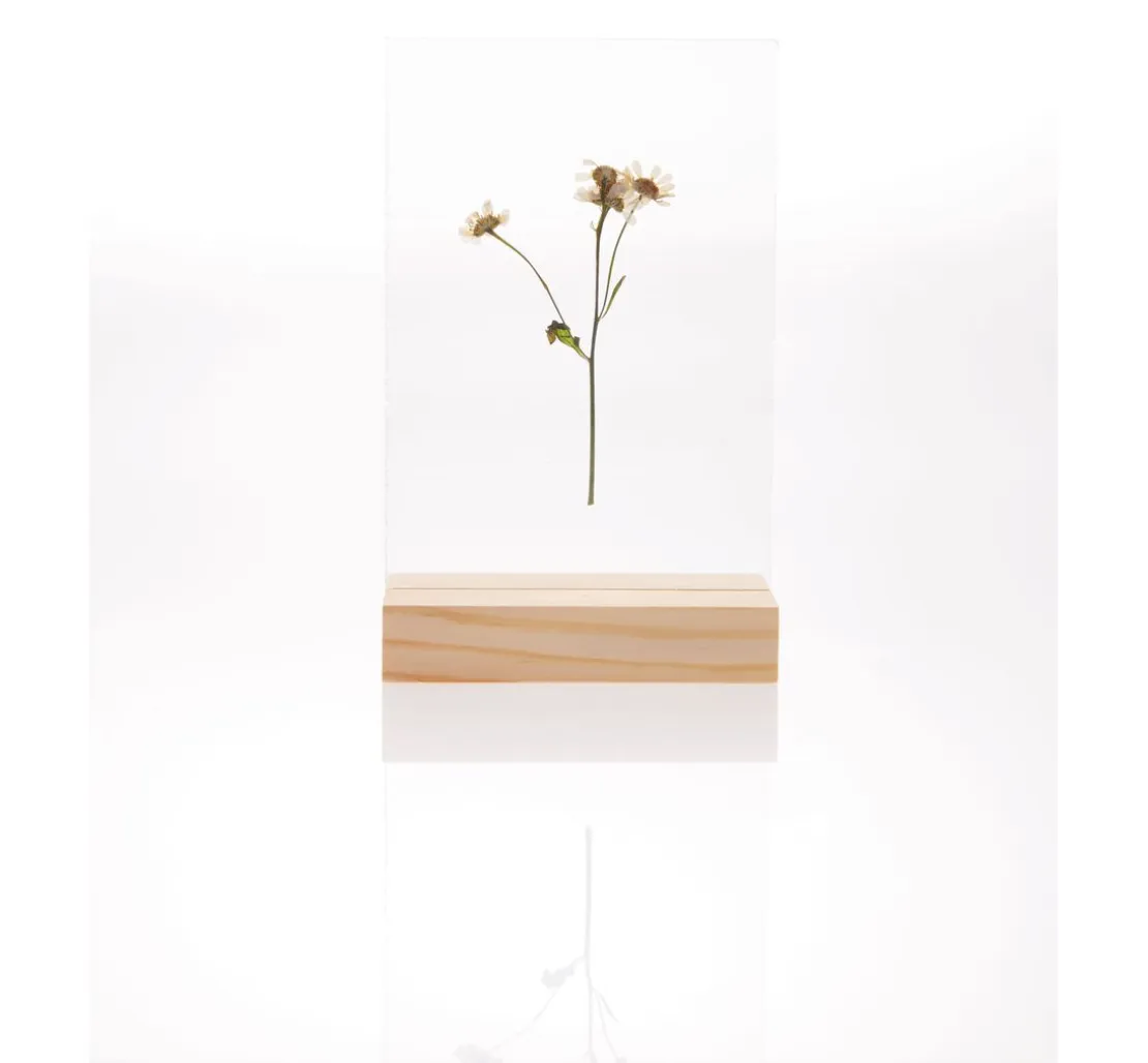 Der Rico Design Holzaufsteller mit doppelter Acrylscheibe kann vielseitig mit Fotos und gepressten Blüten, Gräsern und Blättern dekoriert werden. Die Größe der Acrylscheibe beträgt ca. 13 x 18 cm und die Gesamthöhe inklusive Holzblock beträgt ca. 19,2 cm.