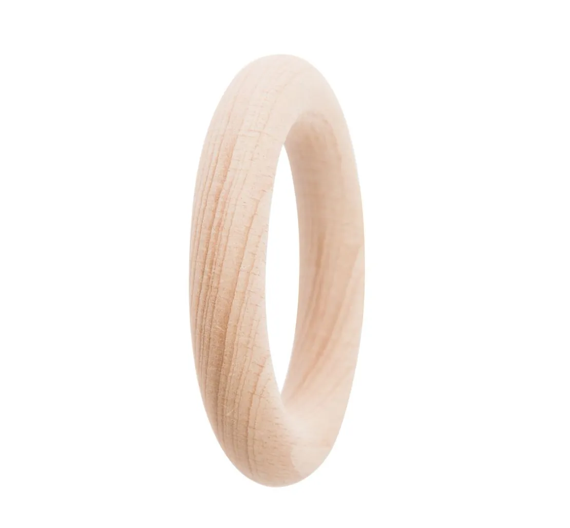 Dieser Holzring ist speichelecht und eine super Grundlage für das Anfertigen einer Rassel oder eines Beißringes mit einem Häkeltier. Der Holzring ist Made in EU.