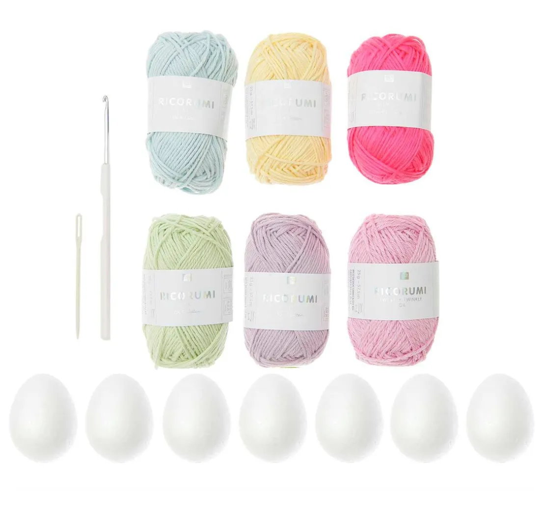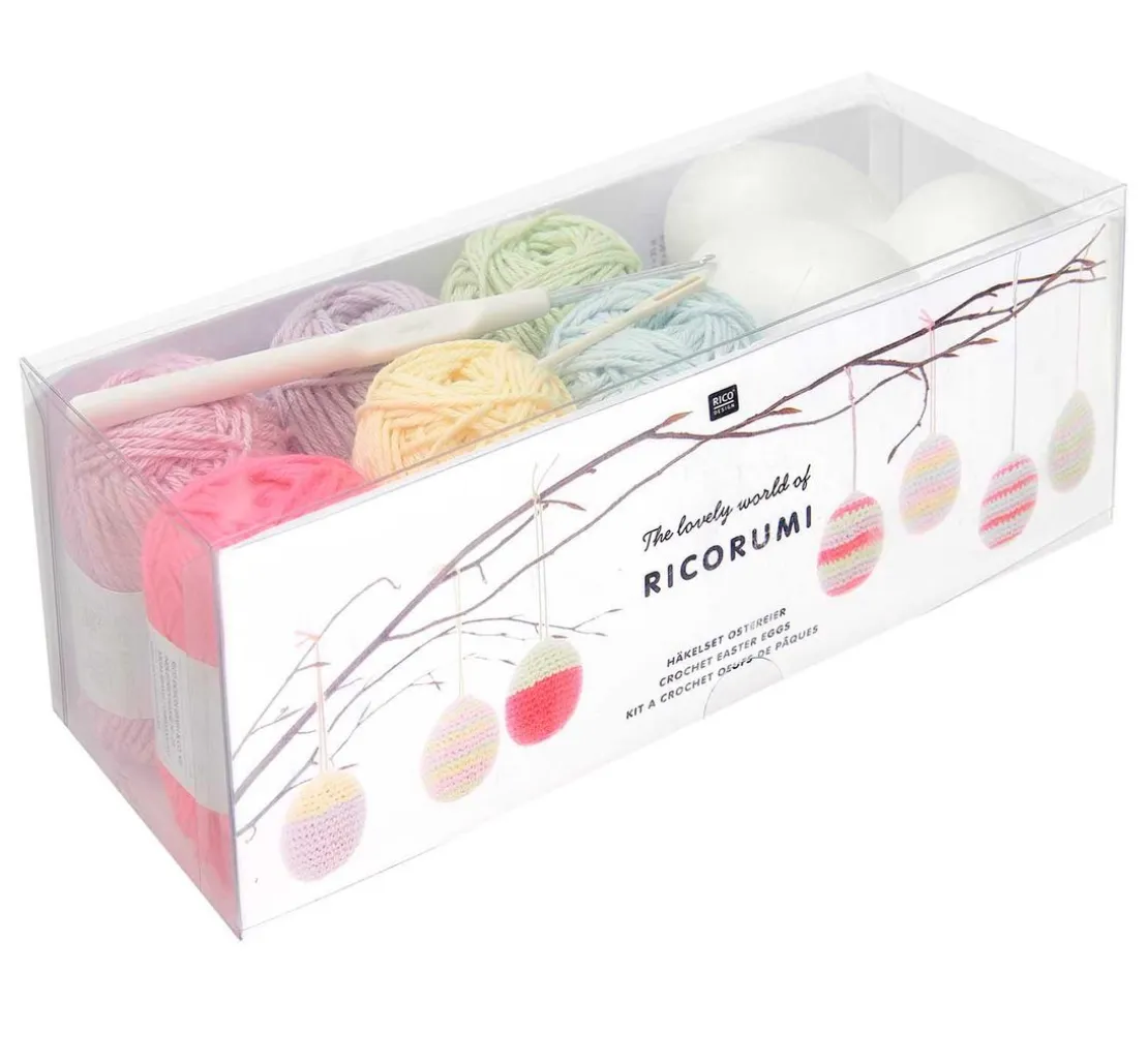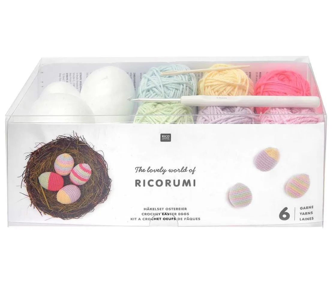 Mit diesem Rico Design Ricorumi Häkelset „Ostereier Pastel“ lässt sich moderne Osterdekoration in zarten Farben anfertigen. Das Set enthält das komplette Material für das Häkeln von 7 Ostereiern mit einer Größe von ca. 6 cm.