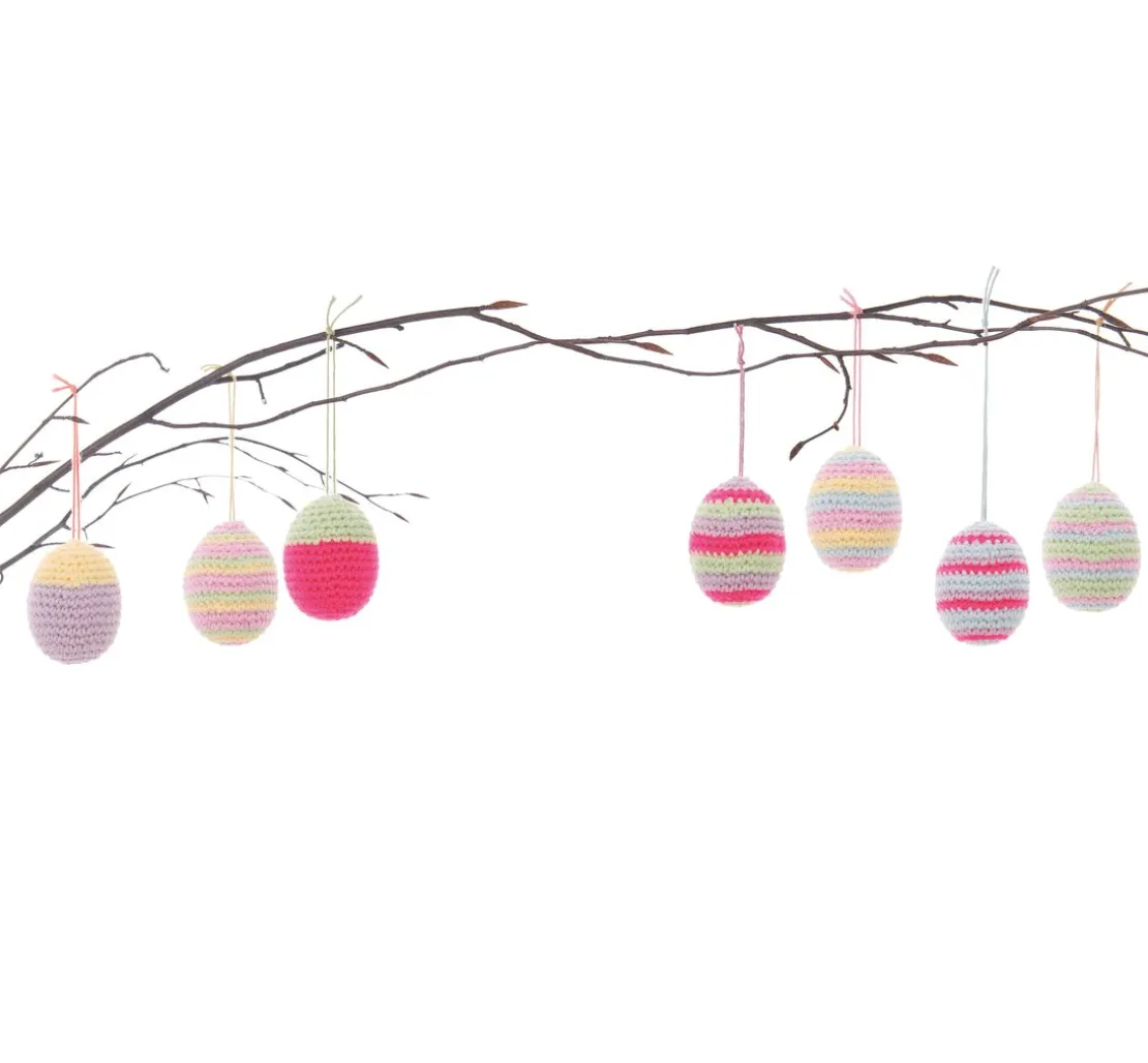 Mithilfe der ausführlichen Anleitung lassen sich einfarbige, zweifarbige und gestreifte Eier häkeln. Das Garn in pastelligen Farben kann nach Lust und Laune miteinander kombiniert werden. Die verschiedenen Modelle sind eine prima Dekoration für das Osternest oder auch super zum Hängen an den Osterzweig.