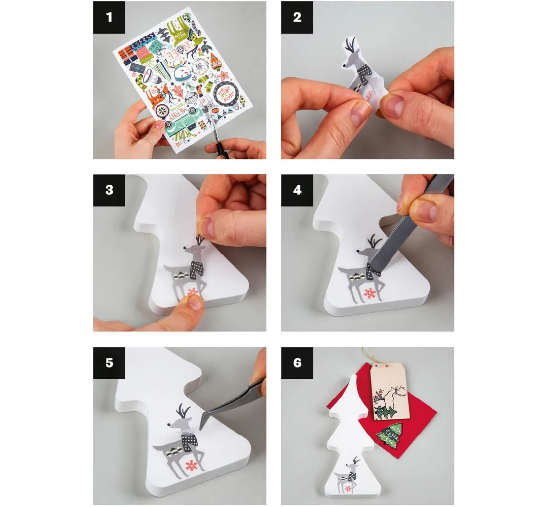 Mit 3 Bögen voller festlicher Designs kannst du deine Lieblingsmotive auswählen und auf Materialien wie Raysin, Holz, Pappmaché und Papier aufbringen. Einfache Anwendung: Motiv ausschneiden, Trägerpapier entfernen und das Motiv mit der klebenden Seite auf den sauberen, trockenen Untergrund legen. Rubble es mit einem Werkzeug sorgfältig auf, bis sich die Trägerfolie löst und das Motiv perfekt haftet. Bitte nicht auf Kerzen oder Lebensmitteln auftragen!
