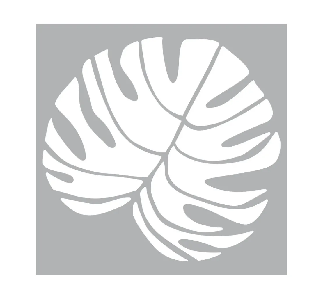 Die Schablone „Big Monstera Blatt„ mit einer Größe von 30 x 30 cm besteht aus Polyester und ist ein großes Blatt der Monstera Pflanze. Das Blatt selbst hat eine Größe von ca. 26,5 x 27,5 cm.