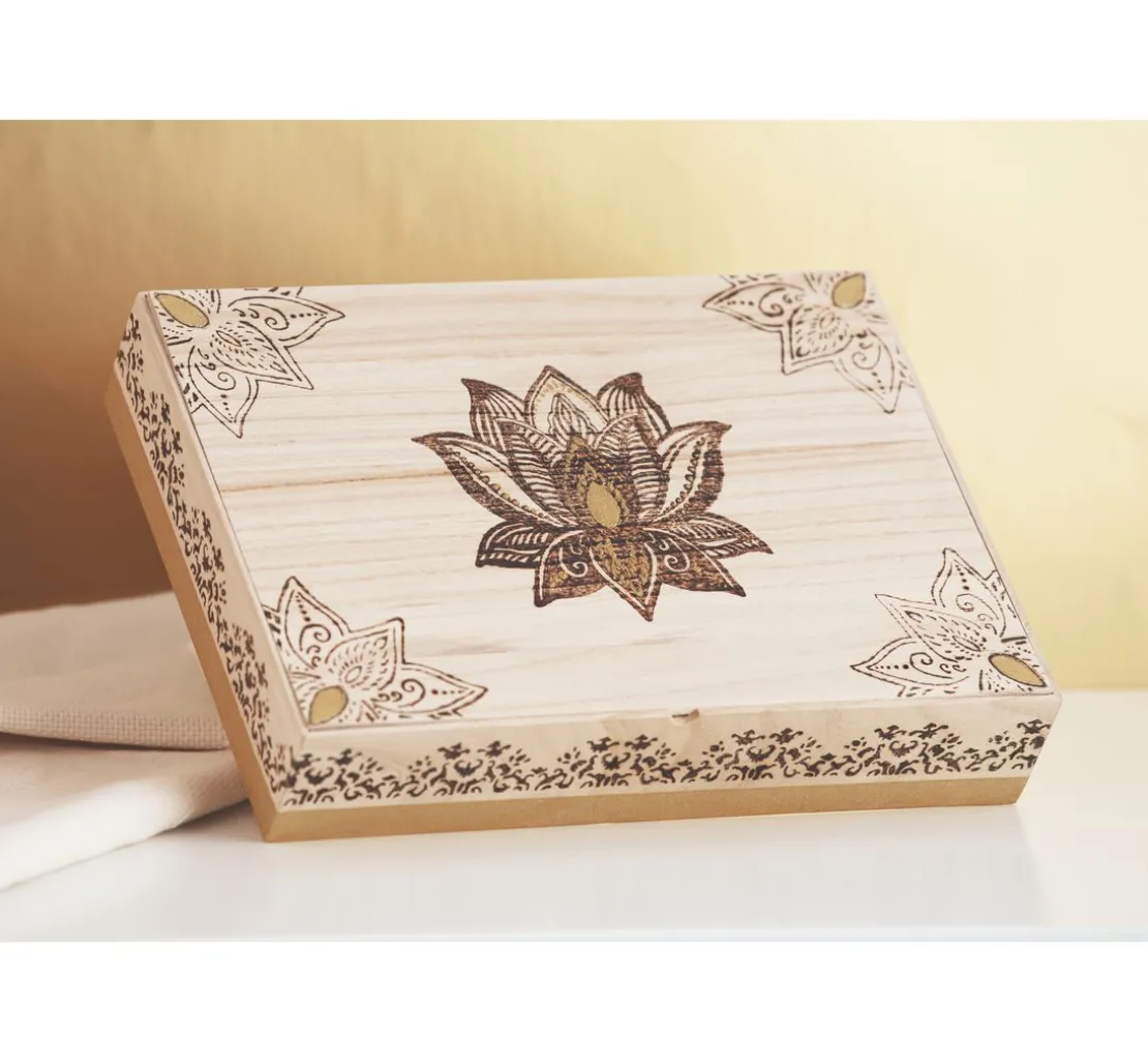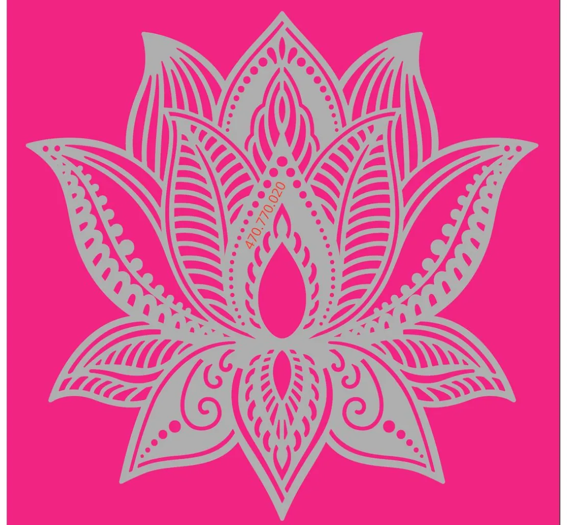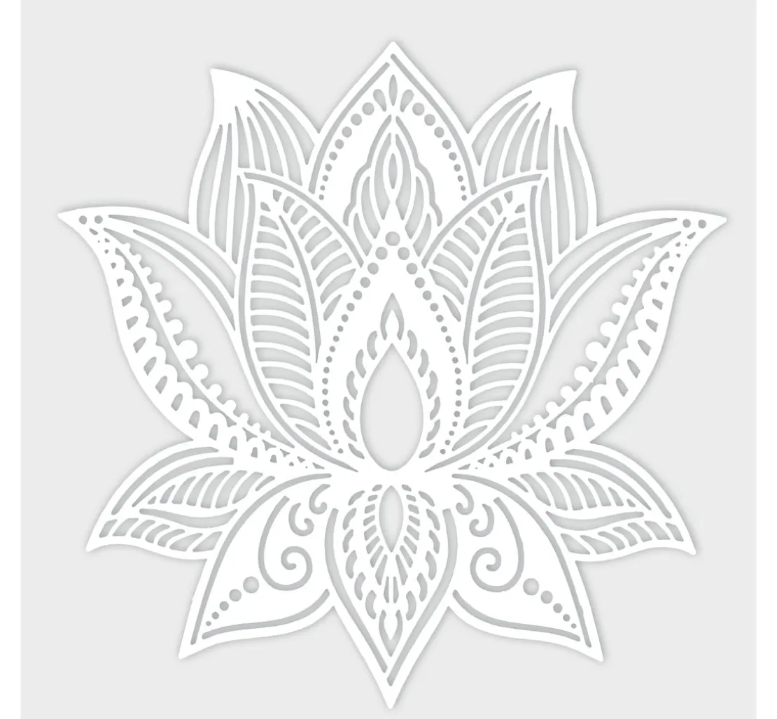 Die Schablone „Lotus Blume“ hat einen Ø von ca. 15 cm und kann individuell auf verschiedene Materialien wie Holz, Glas, Textilien oder Papier aufgetragen werden.