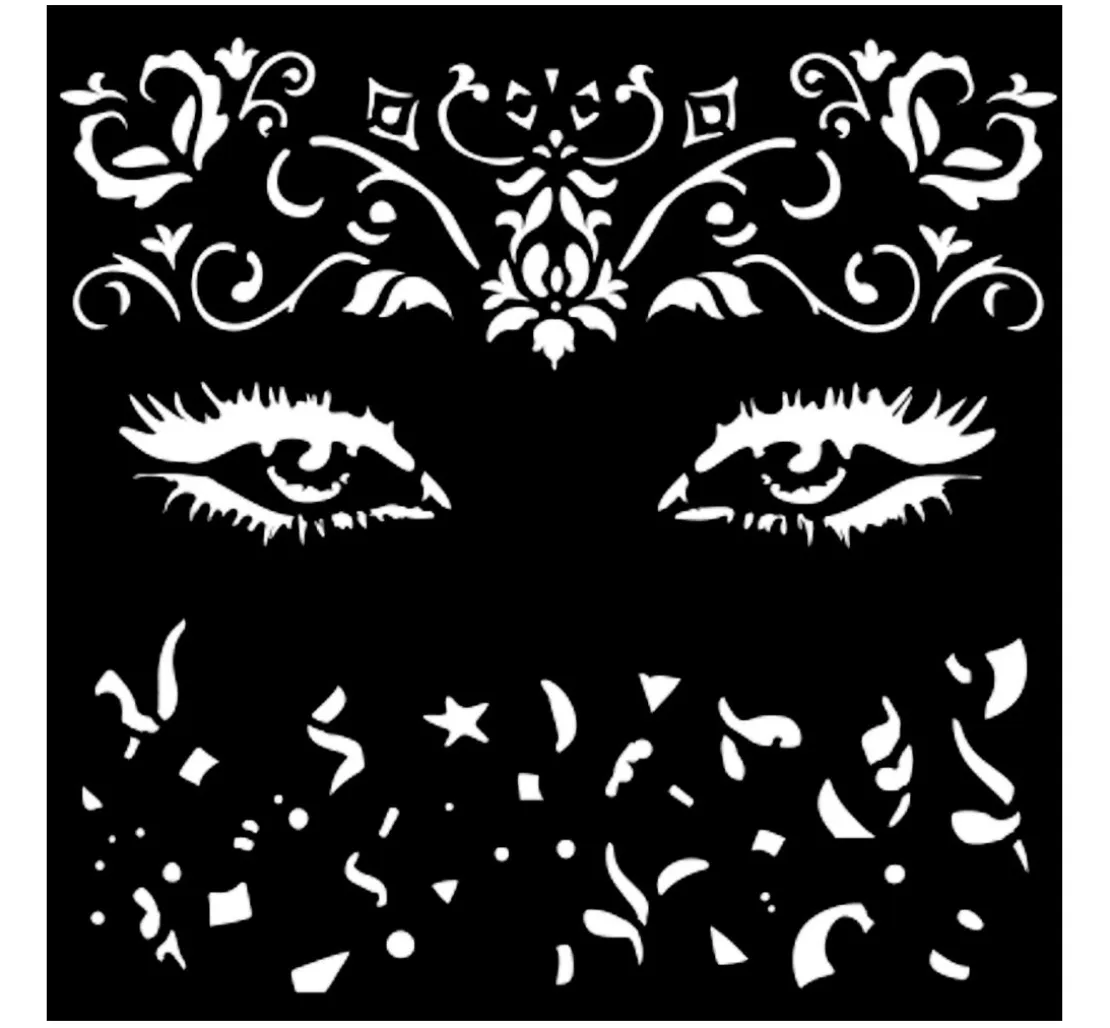 Tauche ein in eine Welt voller Kreativität mit der Schablone „Masquerade“ – dein ultimativer Begleiter für einzigartige Designs und kreative Projekte. Diese Schablone verleiht deinen Ideen Form und Ausdruck und ist perfekt für Bastelliebhaber.