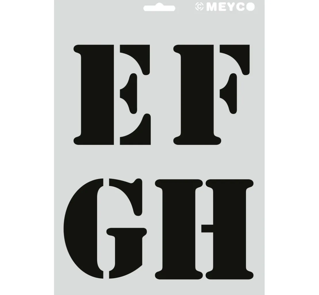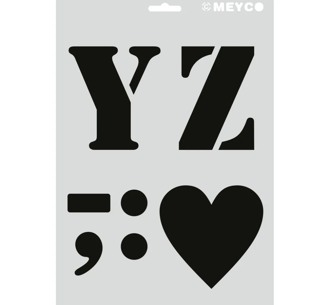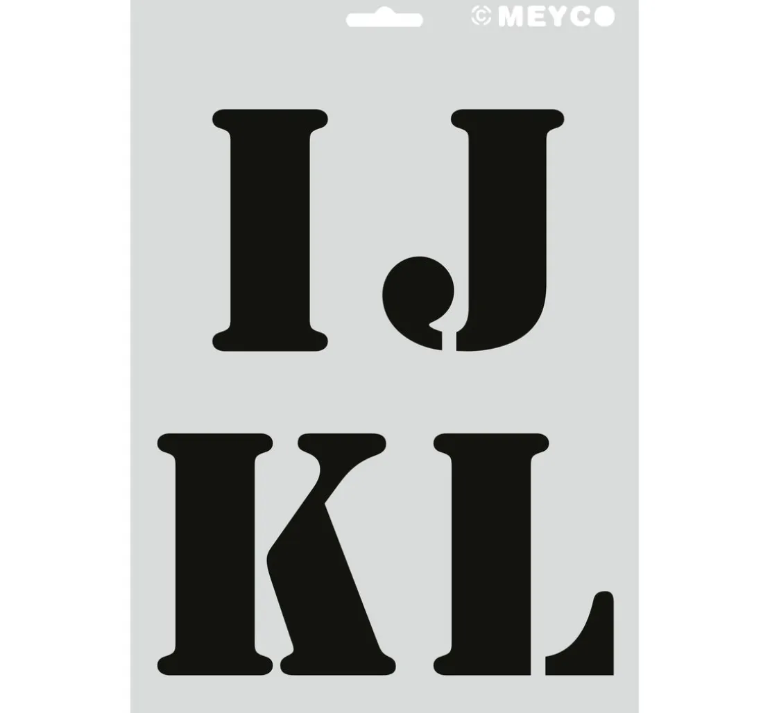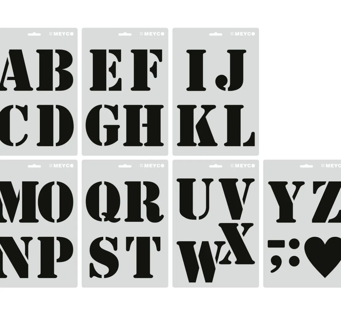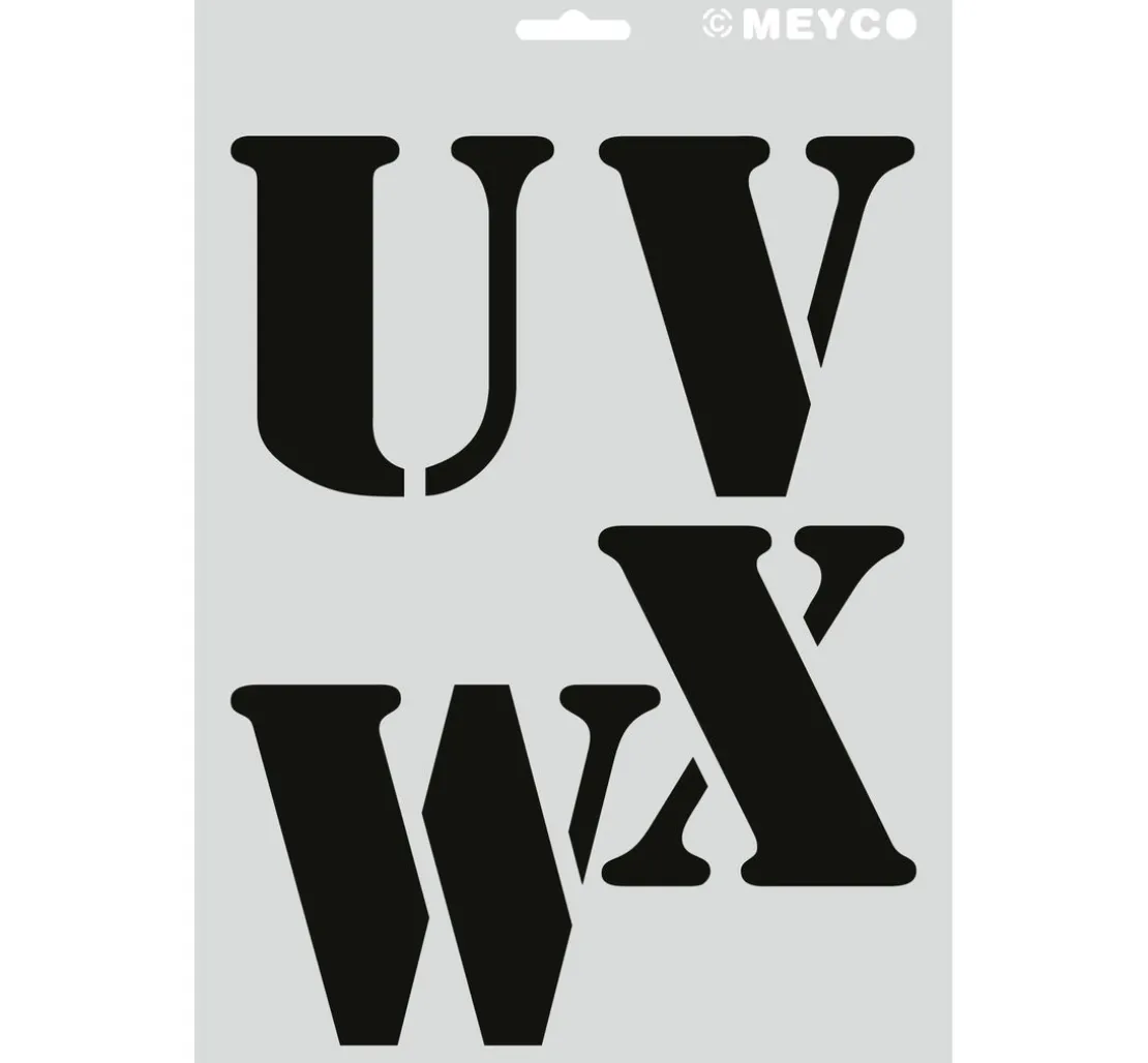 Das Schablonen-Set „XL Buchstaben“ besteht aus 7 Bogen mit ca. 10 cm großen Buchstaben und Sonderzeichen. Jede transparente Schablone ist ca. 21 x 31 cm groß.
