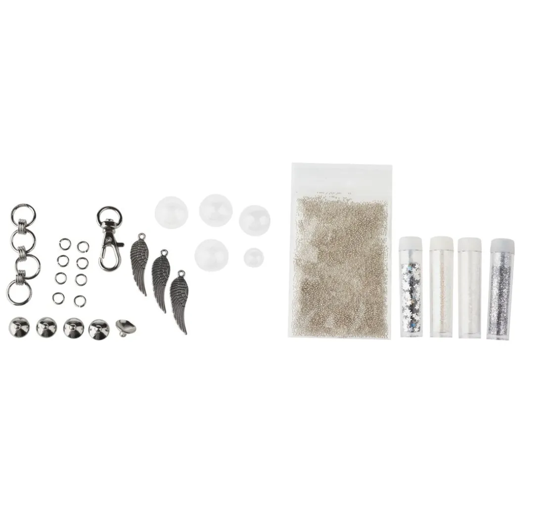 Das Set beinhaltet alle Materialen die für den Zusammenbau des Anhängers benötigt werden. Es wird zusätzlich nur ein Schmuckkleber zum Bestfestigen der Endkappen und eine Schmuckzange benötigt.