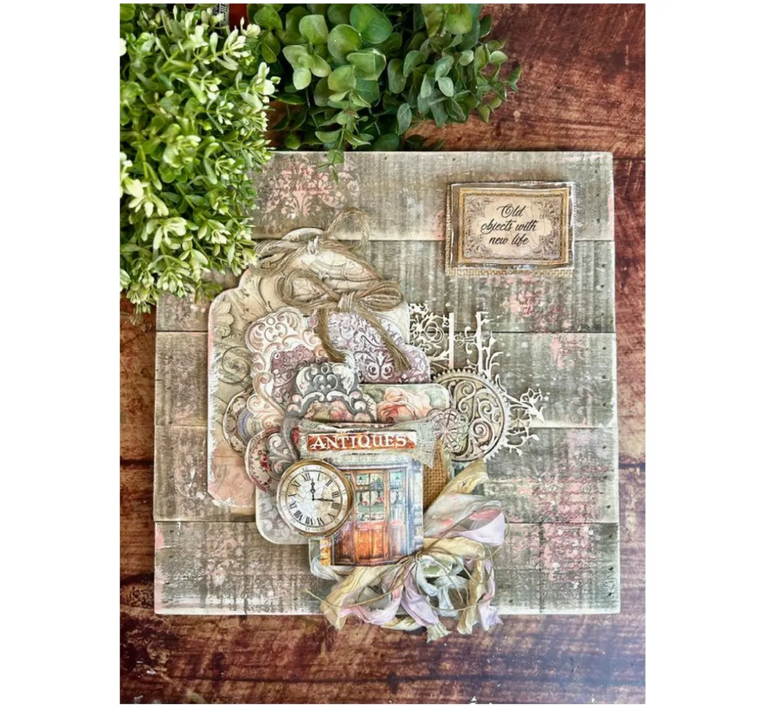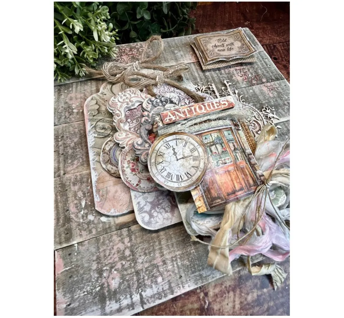 Die Kollektion „Brocante Antiques“ umfasst verschiedene Motive wie ein Antiquitäten-Geschäft, Lampen, Uhren, Geschirr, Teddys, Fotoapparate, Tags und viele weitere Antiquitäten. Diese können perfekt miteinander kombiniert werden, um ein stimmiges Gesamtbild zu schaffen.
