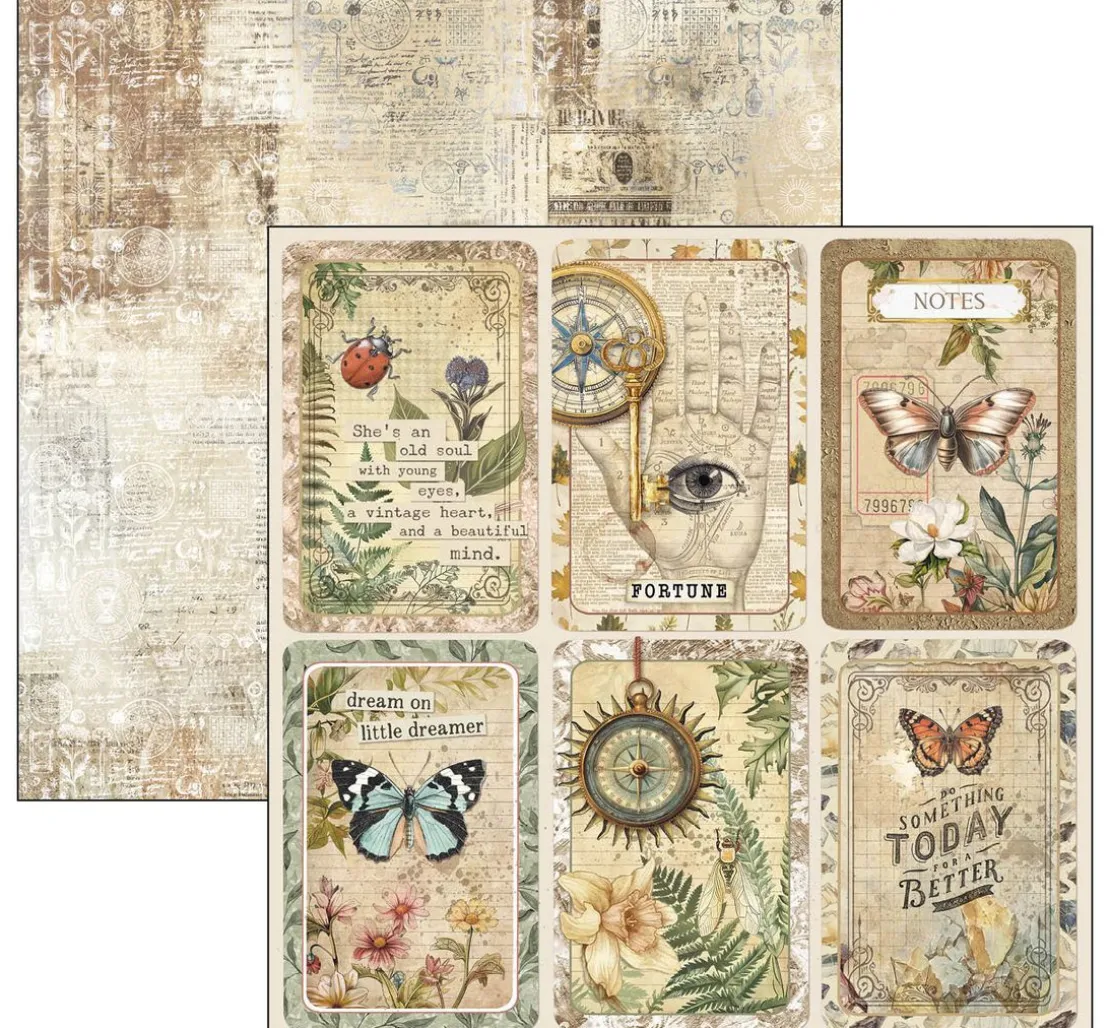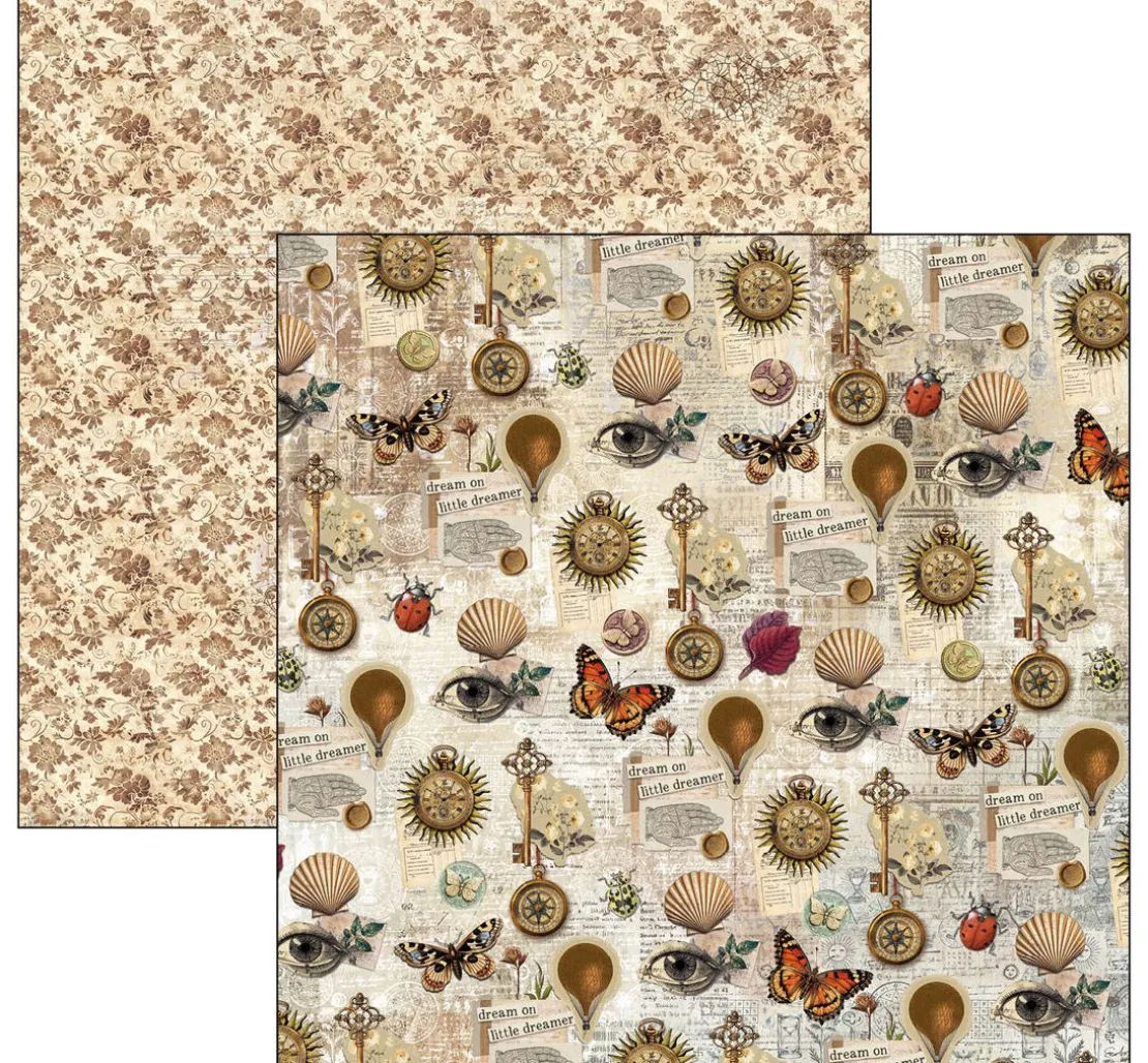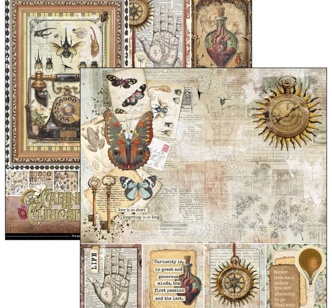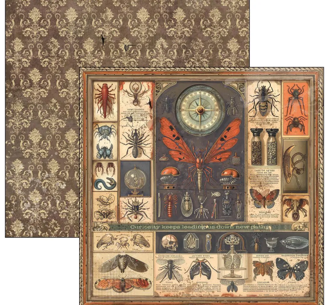 Entdecke die faszinierende Welt des Scrapbook-Papiers „Cabinet of Curiosities“ und lass deiner Kreativität freien Lauf! Dieses beidseitig bedruckte Motivpapier begeistert mit einer Vielfalt an Designs – von Schmetterlingen und Insekten über Kompasse und Muscheln bis hin zu Pflanzen und anatomischen Zeichnungen.