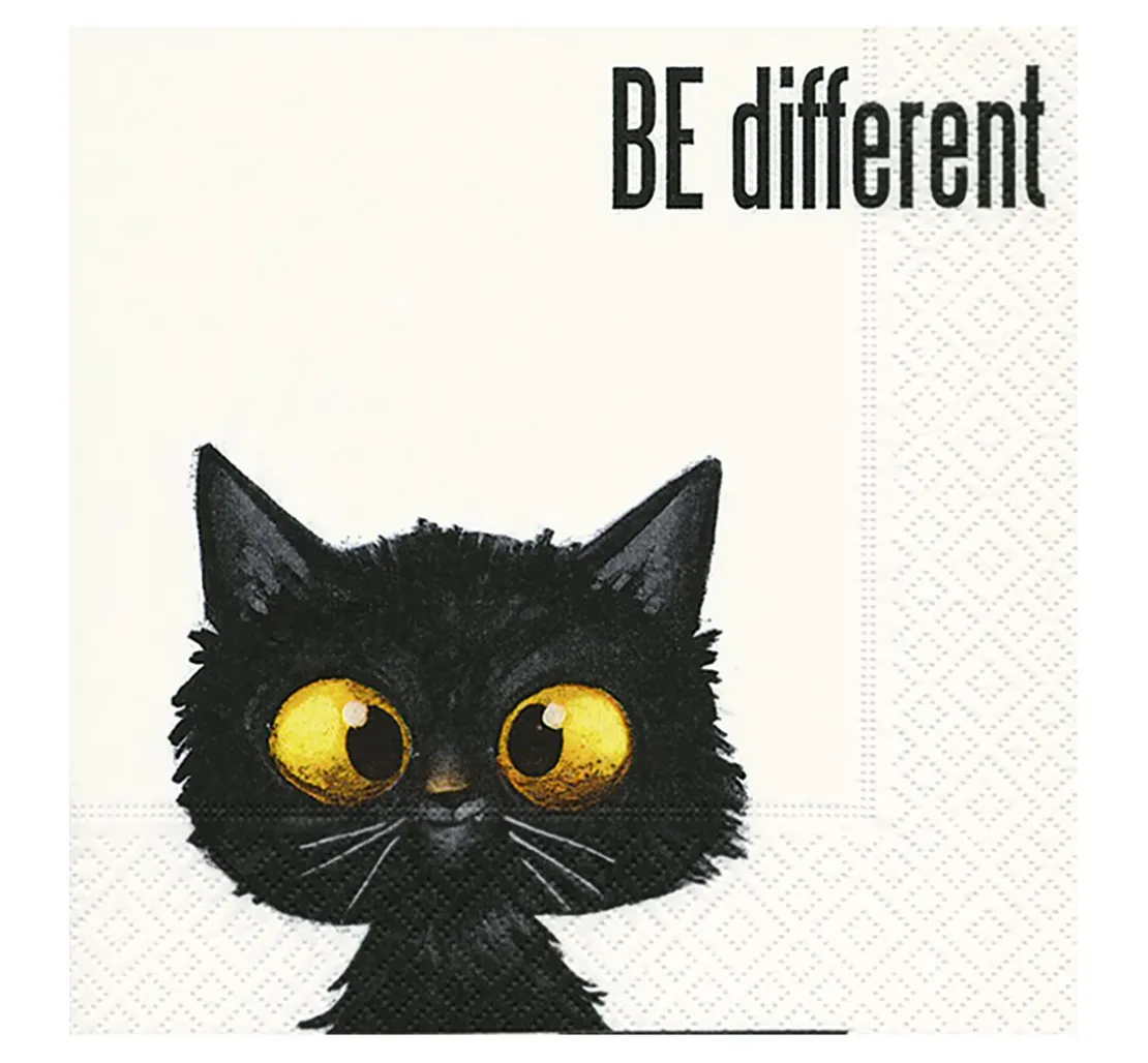 Diese witzige Serviette ist bestens geeignet für die Serviettentechnik oder den gedeckten Tisch. Das Motto „Be Different“ kann super auf Holzartikeln, wie z. B. einem Tablett oder auf Papierschachteln als Geschenkverpackung aufgebracht werden. Seien Sie anders! Seien Sie kreativ!