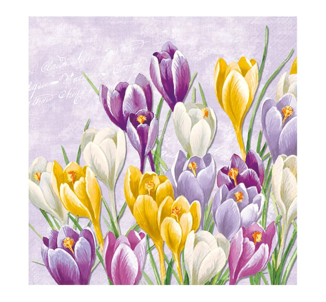 Erfreue dich an dem wunderschönen Serviette „Blühender Krokus“ von IHR. Mit seinem frühlingshaften Design und den vier verschiedenen Farben, wird es deine Bastelprojekte verschönern. Mit der Serviettentechnik kannst du das Motiv auf zahlreiche Untergründe wie Holz, Pappe, Karton, Stoff, Glas, Keramik und vieles mehr übertragen. Du kannst zum Beispiel eine schöne Schachtel, ein Bilderrahmen oder eine Vase gestalten. Mit einer Breite von 33 cm und einer Länge von 33 cm, ist die Serviette einseitig bedruckt und die Rückseite ist weiß. Verleihe deinen Bastelprojekten ein frühlingshaftes Design und erfreue dich an dem wunderschönen Motiv der blühenden Krokusse.