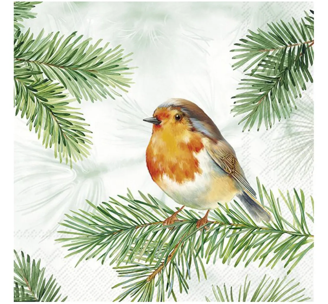 Entdecke die zauberhafte Serviette „Charming Robin“, die winterliche Eleganz auf deinen Tisch bringt. Mit ihrem Viertel-Motiv zeigt sie vier charmante Rotkehlchen, die in einer verschneiten Landschaft verweilen und eine gemütliche Atmosphäre schaffen. Dank der Serviettentechnik kannst du dieses Motiv auf unterschiedlichste Materialien wie Glas, Keramik, Stoff oder Metall übertragen. Verleihe deinen Möbeln oder Schubladen einen einzigartigen Look oder gestalte dekorative Tabletts. Ergreife die Gelegenheit und bringe winterlichen Charme in dein Zuhause!