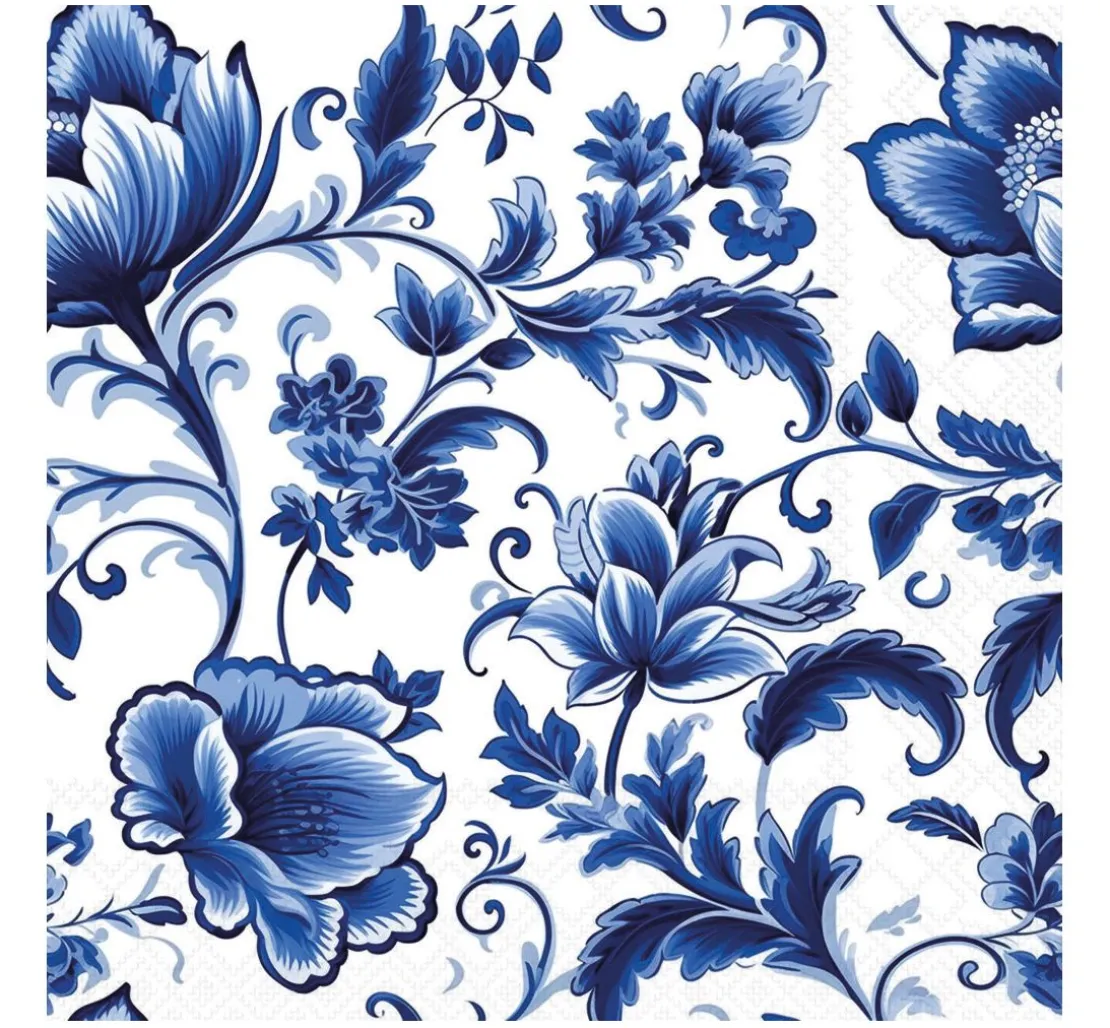 Erwecke deine Kreativität mit der Serviette „Delft blue Florals“! Diese kunstvoll gestaltete Serviette bringt den Charme klassischer Blumenmuster in dein Zuhause. Mit ihrer großzügigen Größe von 33 x 33 cm und einer einseitigen Bedruckung ist sie ideal für die Serviettentechnik oder Decoupage. Verwandle einfache Möbelstücke und Schubladen in individuelle Kunstwerke – du benötigst lediglich den passenden Kleber und optional einen Lack zum Versiegeln.