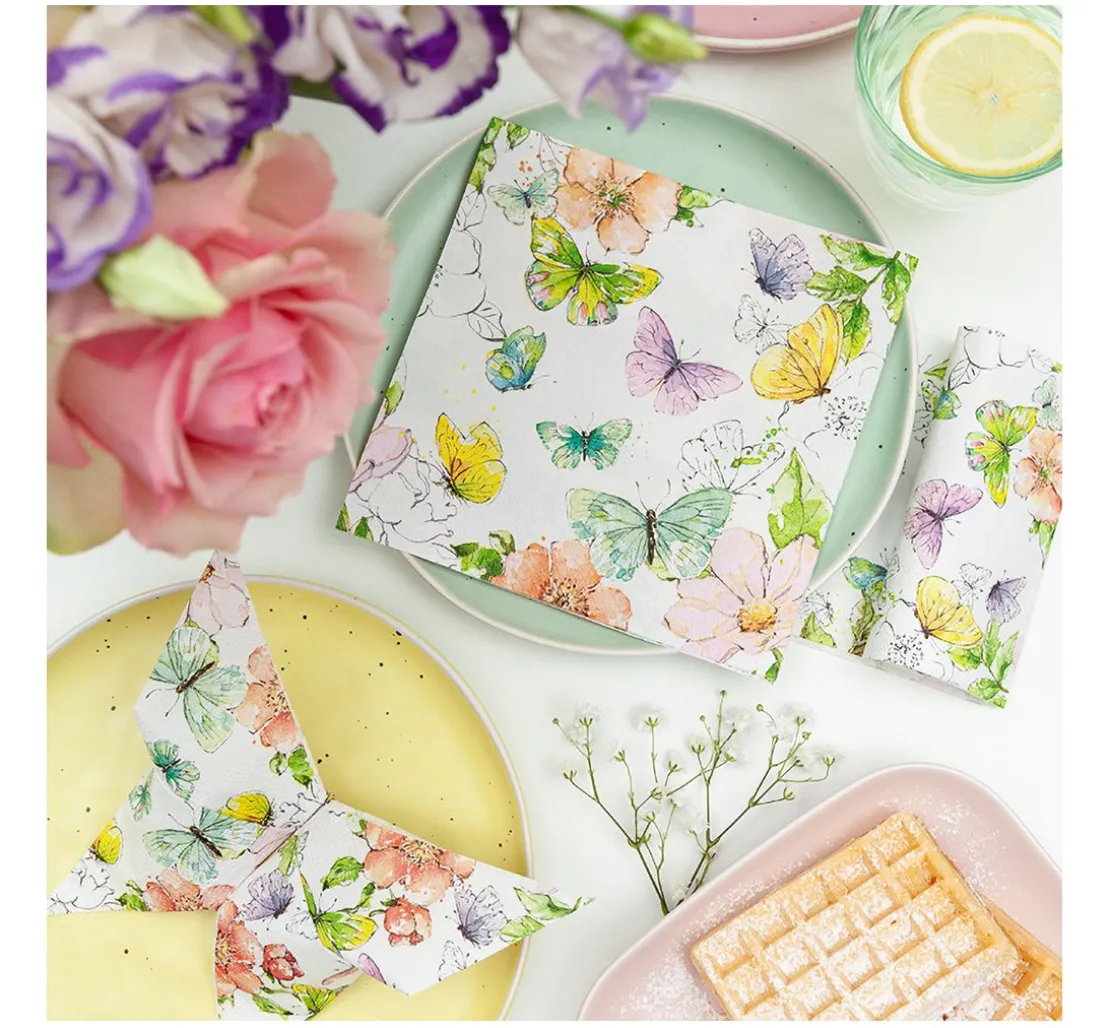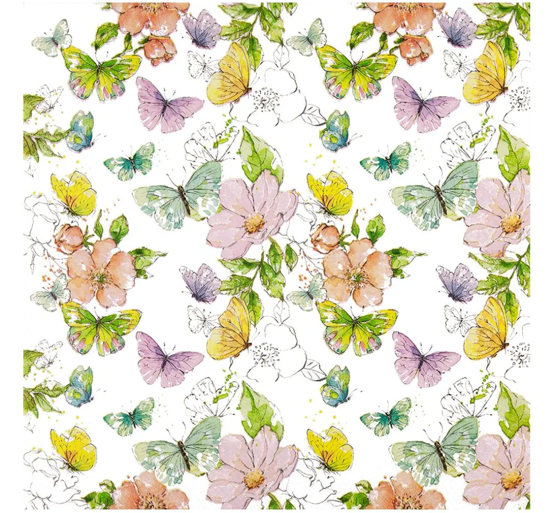 Verwandle deine DIY-Projekte in wahre Frühlingswunder mit der Serviette „Enchanted Butterflies“. Dieses zauberhafte Design mit bunten Schmetterlingen und floralen Akzenten bringt Leichtigkeit und Frische in dein Zuhause. Mit der Serviettentechnik kannst du das Motiv mühelos auf Glas, Keramik, Holz und mehr übertragen. Gestalte einzigartige Möbelstücke oder verleihe Schubladen ein neues Leben. Die viertel Motiv-Einteilung bietet dir dabei kreative Freiheit. Maße: 33 x 33 cm. Kreiere deine eigenen Kunstwerke!