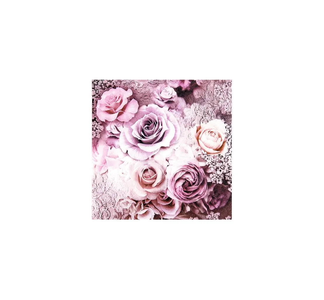 Die Serviette „Evelin„ zeigt ein florales Muster mit wunderschönen Rosen, die in Beeren-Tönen gehalten sind. Das Motiv ist vierteilig.