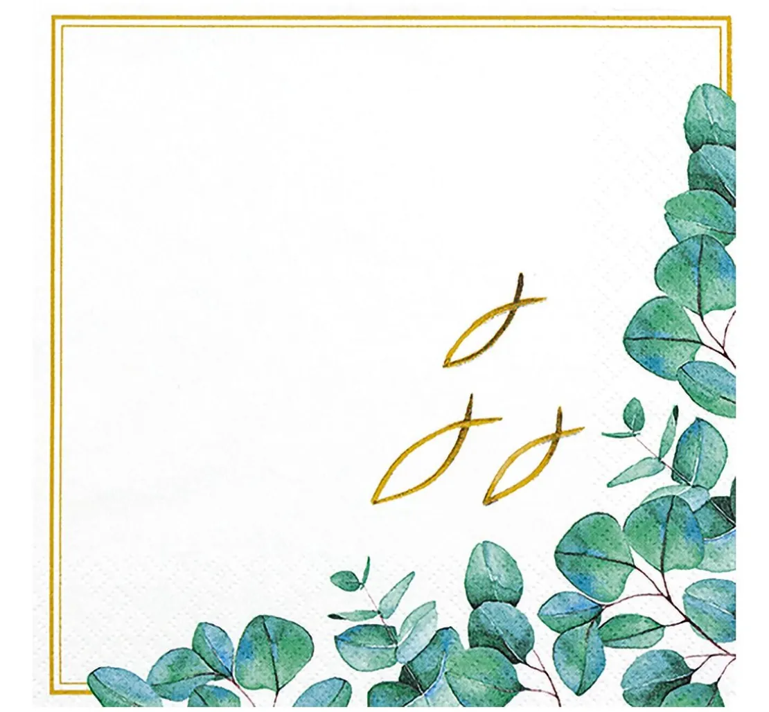Tauche ein in die zauberhafte Welt der Serviettentechnik und lass dich von den wunderschönen Serviettenmotiven verzaubern. Mit der Serviette „Fische/Eukalyptus“ kannst du individuelle Kunstwerke erschaffen. Das Motiv zeigt drei Fischsymbole in Kombination mit zartem Eukalyptus – ein echter Blickfang für deine Bastelprojekte.