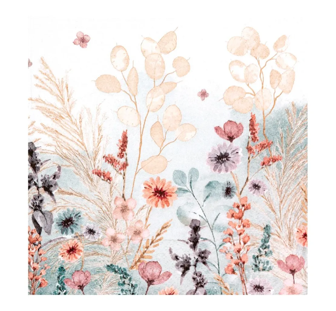 Wenn du gerne dekorierst und kreativ bist, ist die Serviette „Flowers Natural“ genau das Richtige für dich! Auf der Serviette findest du wunderschöne Silberblatt Pflanzen, verschiedene Blumen und Sträucher als Motiv.