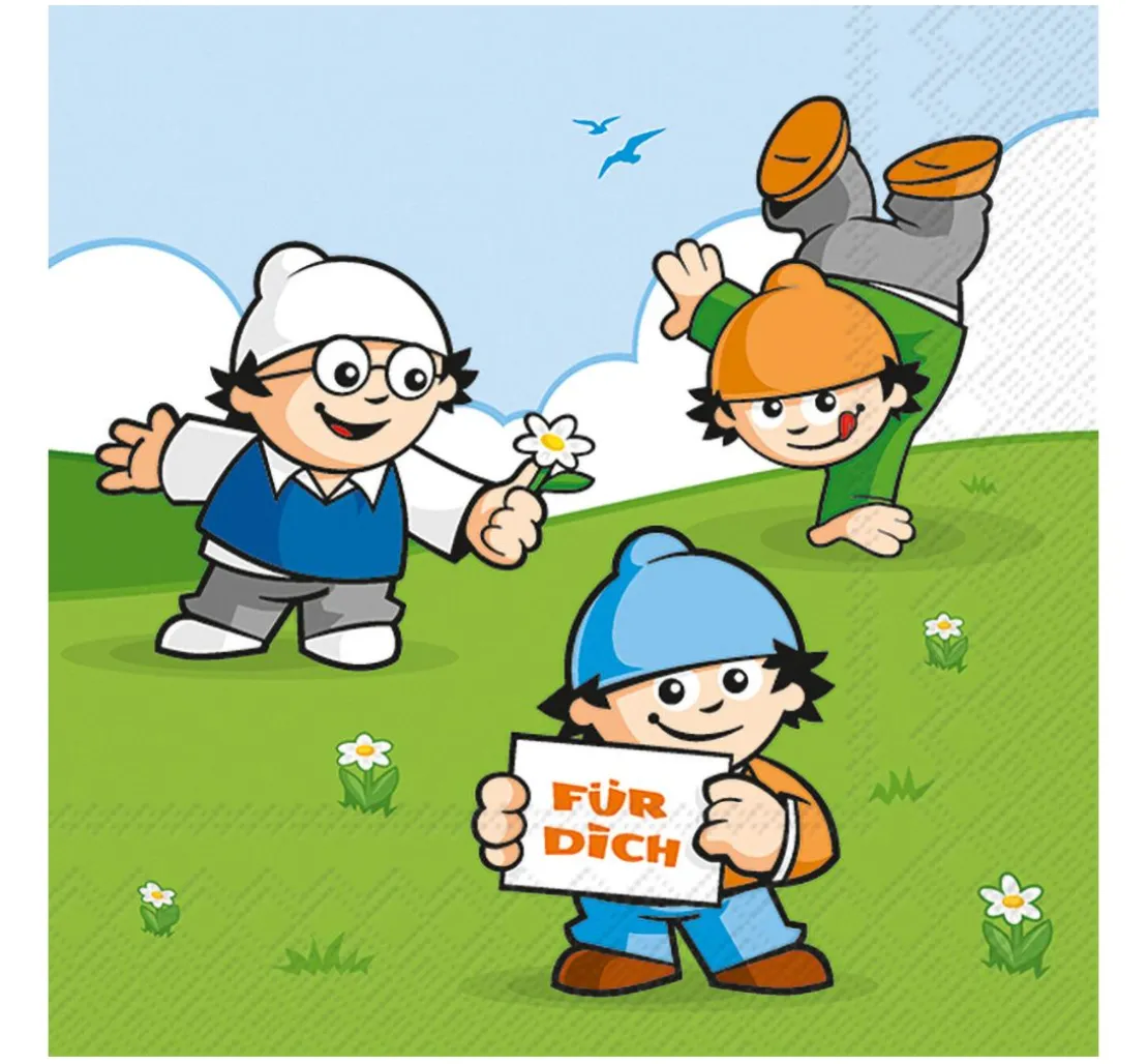 Entdecke die verspielte Welt der Mainzelmännchen mit der charmanten Serviette „Mainzelmännchen“! Das fröhliche Motiv zeigt die kleinen Helden bei einem Ausflug ins Grüne und versprüht pure Lebensfreude. Mit der Serviettentechnik kannst du das Design kinderleicht auf diverse Materialien wie Stoff, Holz oder Keramik übertragen. Gestalte individuelle Geschenke oder verleihe Möbeln und Schubladen einen einzigartigen Look. Die Serviette misst 33 x 33 cm und bietet vier ähnliche Motive – ideal für kreative Projekte. Greif jetzt zu und lass deiner Fantasie freien Lauf!