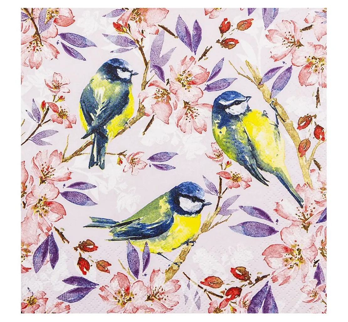 Die Papierserviette „Meisenglück“ hat eine bezaubernde Farbkombination aus Pink, Blau und Gelb. Außerdem eignet Sie sich super um Alltagsgegenstände hübsch zu verzieren.