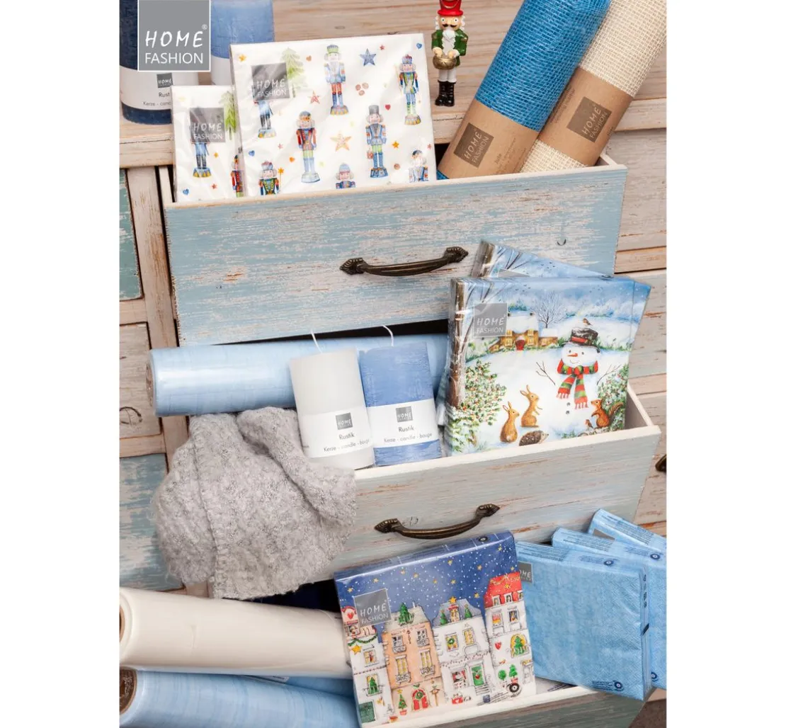 Mit der Serviettentechnik kannst du die Serviette mithilfe von Serviettenlack auf verschiedenste Untergründe wie Holz, Pappe, Karton oder Stoff übertragen und somit tolle DIY-Projekte gestalten. Wie wäre es zum Beispiel mit selbstgemachten Grußkarten oder einer dekorativen Serviettenschachtel? Gestalte mit der Serviette „Winter Village“ eine ganz persönliche Weihnachtsdekoration und lasse dein Zuhause strahlen! Probiere es jetzt aus!