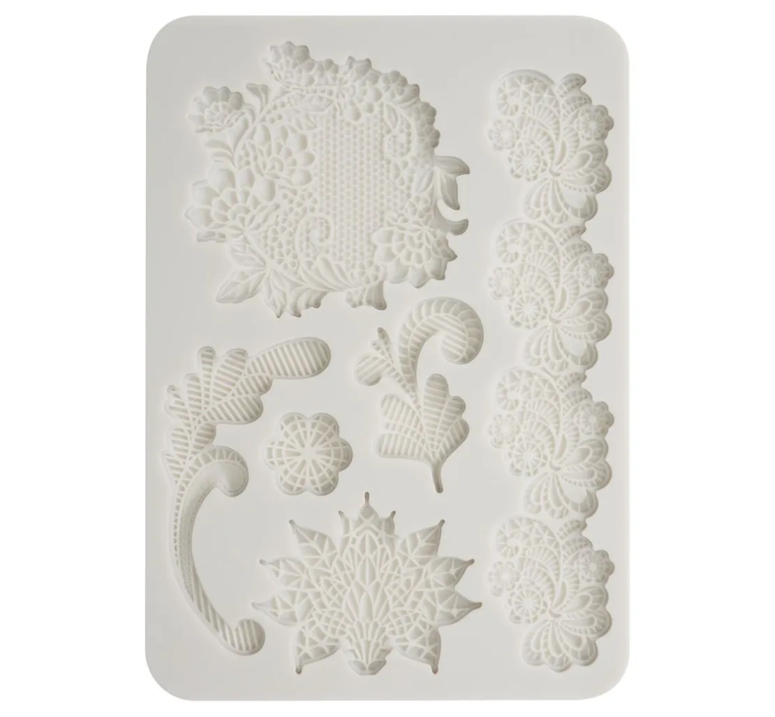 Mit der Silikon Gießform „Brocante Antiques – Blütenspitze“ in A5-Format kannst du deine Bastelprojekte einzigartig gestalten. Die Gießform ist perfekt geeignet für Gießharz, Beton, Kreativgießmasse und Gips und bietet dir somit eine Vielzahl an Möglichkeiten für deine DIY-Projekte.