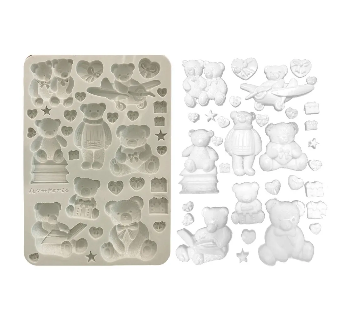 Erwecke deine Kreativität mit der bezaubernden Silikonform A5 „The Owl’s House – Teddy & Bears“. Diese vielseitige Gießform bietet dir 31 liebevoll gestaltete Motive, die dich in eine Welt voller Fantasie entführen. Egal, ob du Beton, Gießharz, Modelliermasse oder Kreativgießmasse verwendest, die Ergebnisse werden dich begeistern.