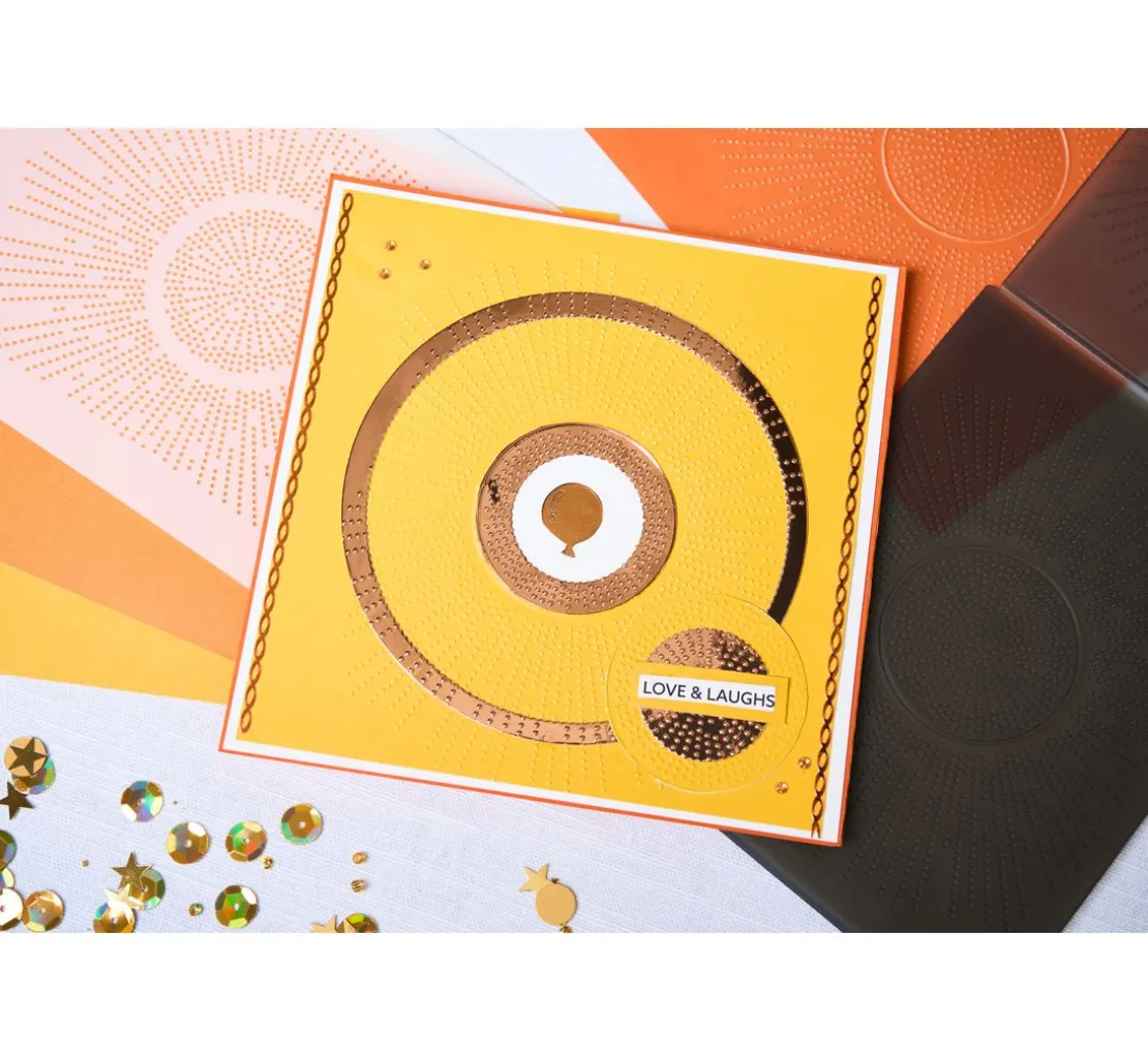 Die Schablone ist das ideale Werkzeug für alle kreativen Köpfe, die Wert auf hochwertige Materialien und einzigartige Designs legen. Sie kann mit weiteren Stanz- oder Prägeschablonen kombiniert werden und bietet somit unendliche Gestaltungsmöglichkeiten.