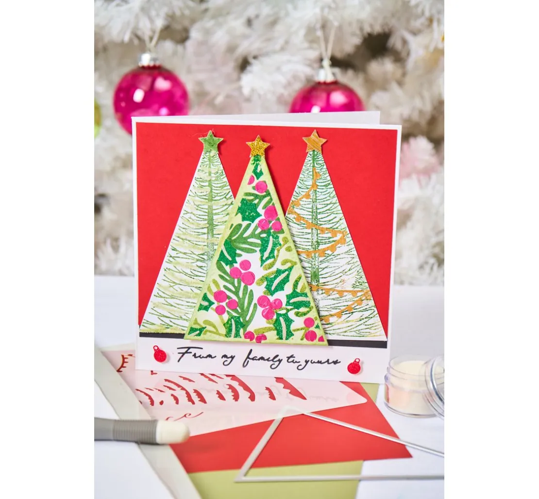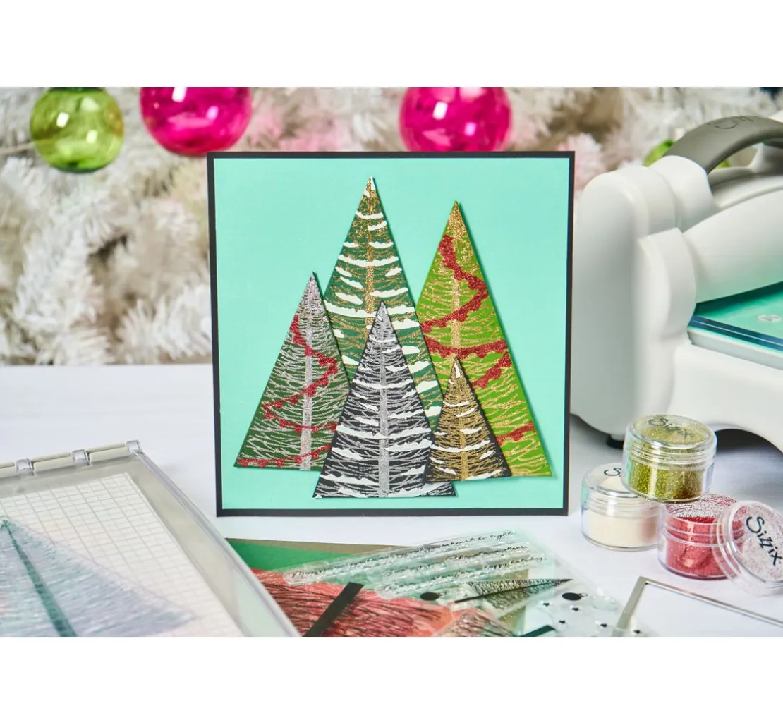 Das Sizzix Clear Stamp and Stencil Set „Merry and Light by Stacey Park“ ist das perfekte Werkzeug für alle Bastelbegeisterten, die sich auf die Weihnachtszeit einstimmen möchten. Mit diesem hochwertigen Set aus Clear Stamp und Schablone kannst du Tannen- und Weihnachtsbäume auf verschiedensten Materialien stempeln und schablonieren. Die Motivgröße beträgt 1,3 x 1,6 cm – 16,5 x 10,5 cm und bietet somit unendlich viele Gestaltungsmöglichkeiten.
