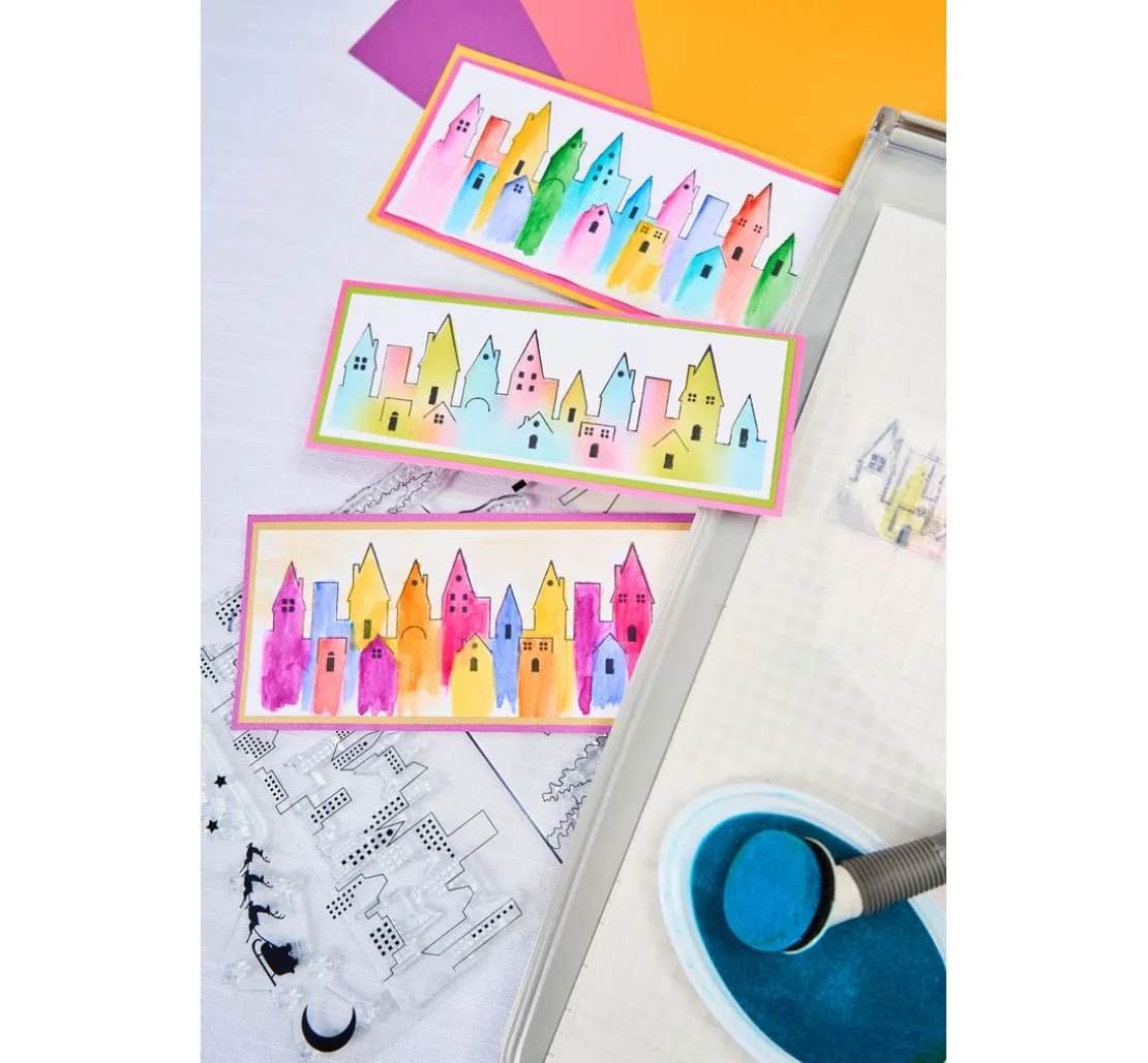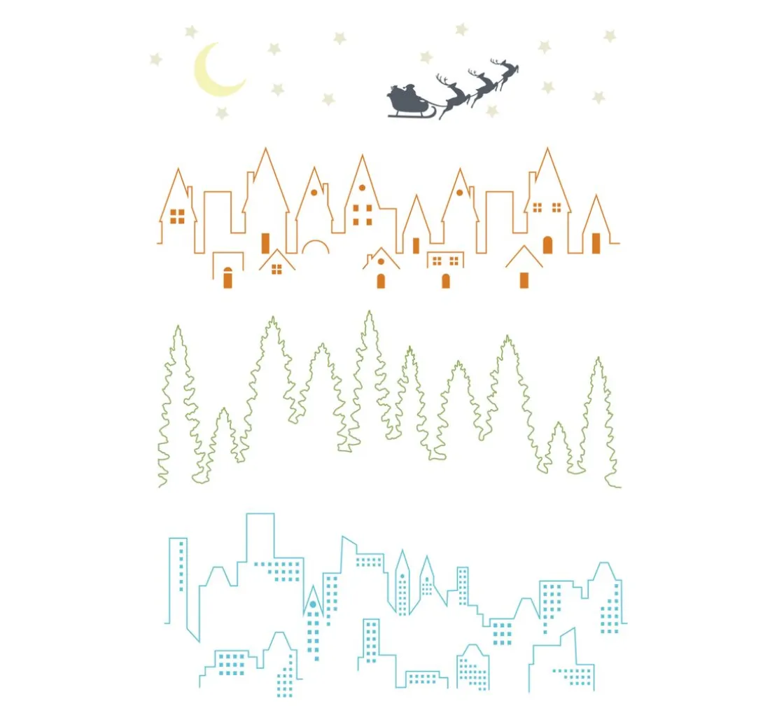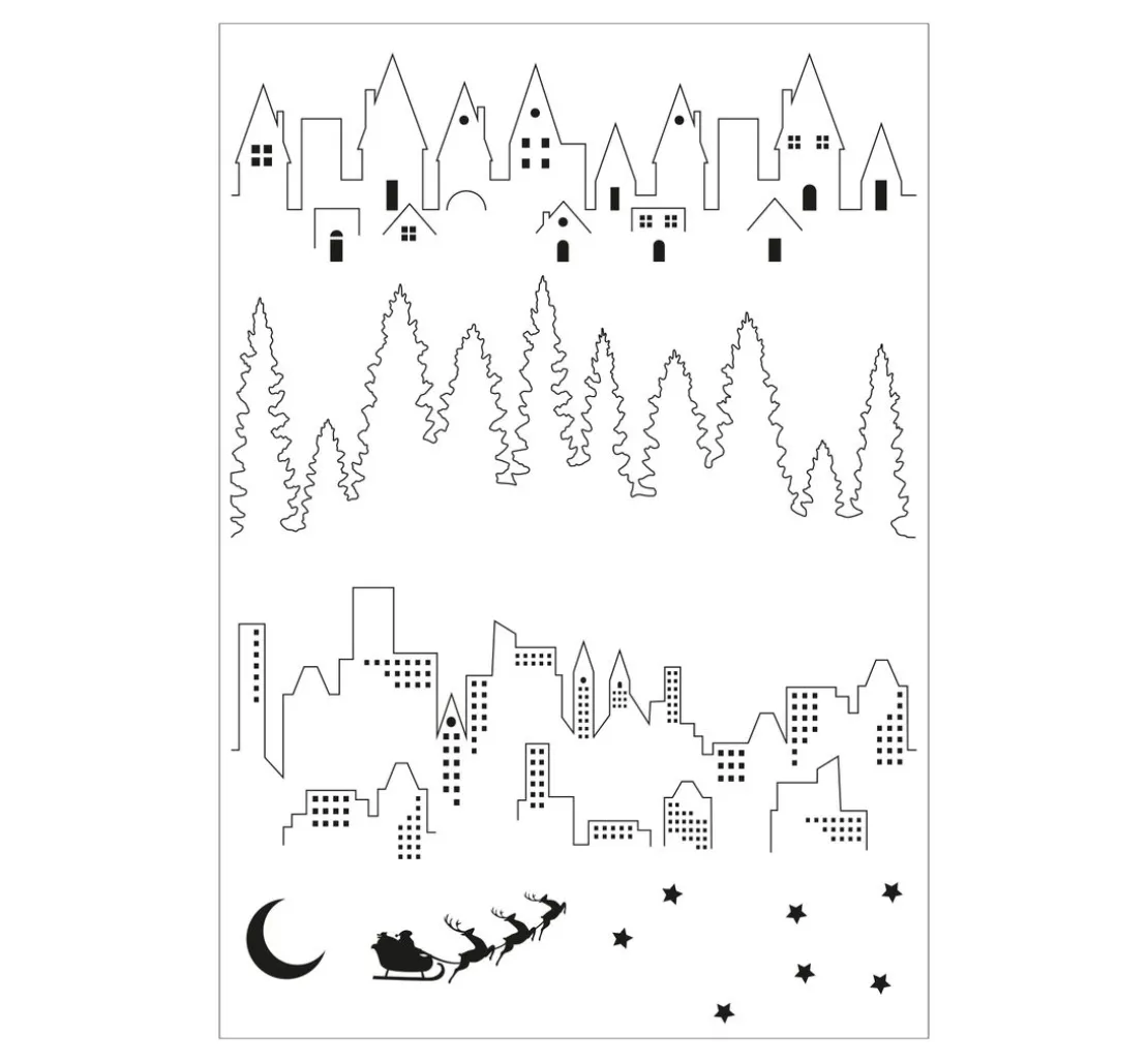 Mit dem Sizzix Clear Stamp Set „Cosmopolitan – The View by Stacey Park“ kannst du deine Kreativität voll ausleben. Das Set enthält 6 Stempel, die einzeln oder miteinander kombiniert verwendet werden können. Mit Motiven wie Häusern, Tannen, Sternen, dem Weihnachtsmann mit Schlitten und Rentieren kannst du zauberhafte Weihnachtslandschaften gestalten. Aber auch außerhalb der Weihnachtszeit sind die Stempel vielseitig einsetzbar.