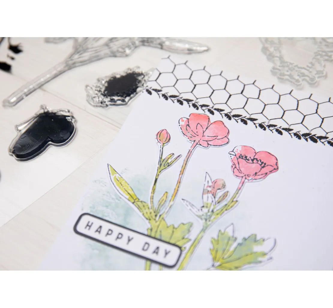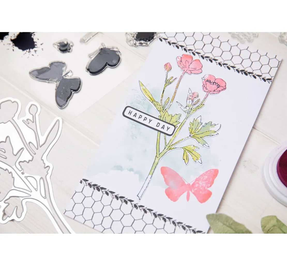 Mit der Sizzix Framelits Stanzschablone und Clear Stamps „Painted Pencil Botanical“ kannst du deiner Kreativität freien Lauf lassen und einzigartige Blumenmotive mit Schmetterlingen kreieren. Dieses Set besteht aus einer Stanzschablone aus Metall und Silikonstempeln. Die Motivgröße beträgt 1,0 x 1,6 cm – 12,4 x 7,6 cm. Mit der Schablone und den Clear Stamps kannst du deine Projekte ganz nach deinen Vorstellungen gestalten und sie mit weiteren Stanz- oder Prägeschablonen und Stempeln kombinieren. Damit du lange Freude an deinen Stempeln hast, solltest du diese nach dem Gebrauch mit einem Stempelreiniger säubern.