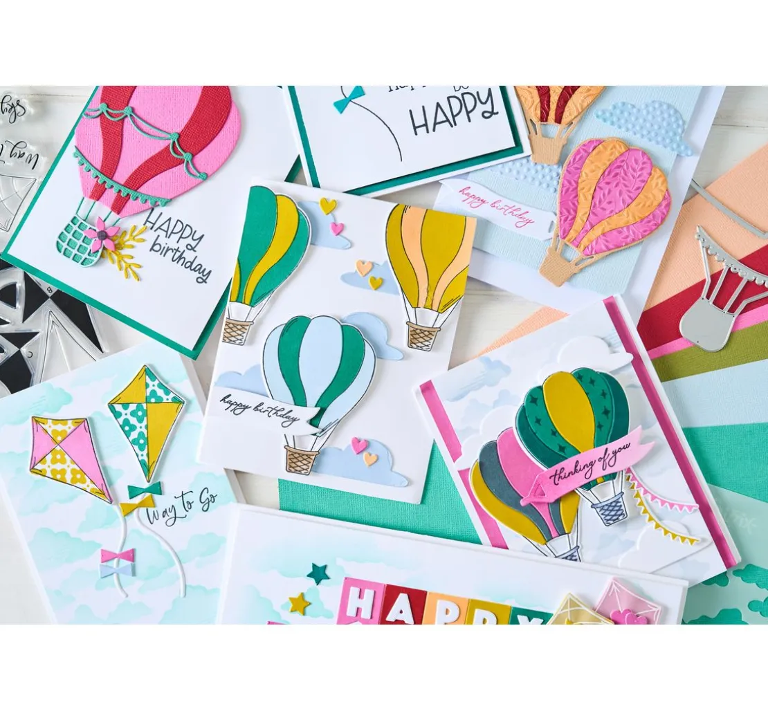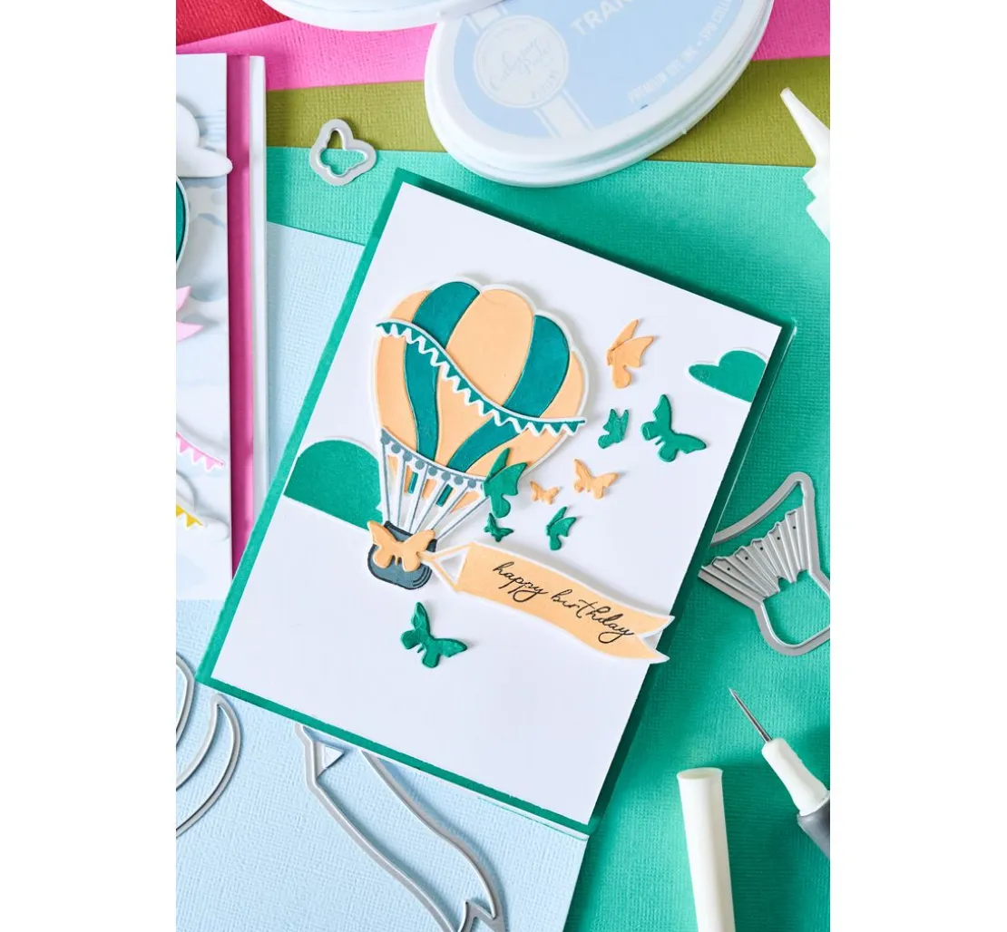 Erhebe dein Bastelprojekt auf ein neues Niveau mit der Sizzix Framelits Stanzschablone „Up and Away by Catherine Pooler“. Lass deiner Kreativität freien Lauf, indem du Heißluftballons und Wolken in atemberaubenden Designs gestaltest, die jedem Projekt eine einzigartige Note verleihen.