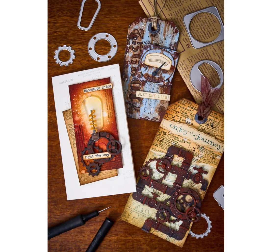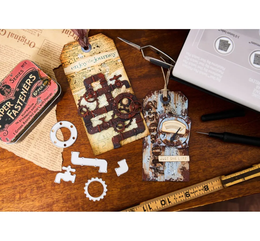 Greife jetzt zu und bringe deine künstlerischen Ideen zum Leben: Bestelle noch heute die Sizzix Thinlits Stanzschablone „Vault Industrial by Tim Holtz“ und fertige individuelle Projekte!