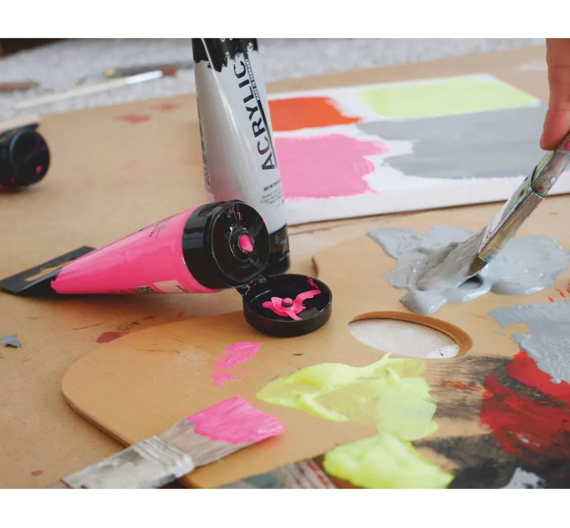 Die Farben sind auf Wasserbasis und umweltfreundlich hergestellt und haben eine sehr hohe Farbintensität und eine brillante Leuchtkraft bei matter Auftrocknung. Weitere hervorragende Eigenschaften wie Lichtechtheit, gute Deckkraft und Wasser-/ und Witterungsbeständigkeit zeichnen diese Acrylfarbe aus. Die weiche und geschmeidige Konsistenz ermöglicht ein cremiges Vermalen mit dem Pinsel oder mit Malmessern auf Leinwand, Papier, Karton, Stein, Metall, Holz u.v.m.