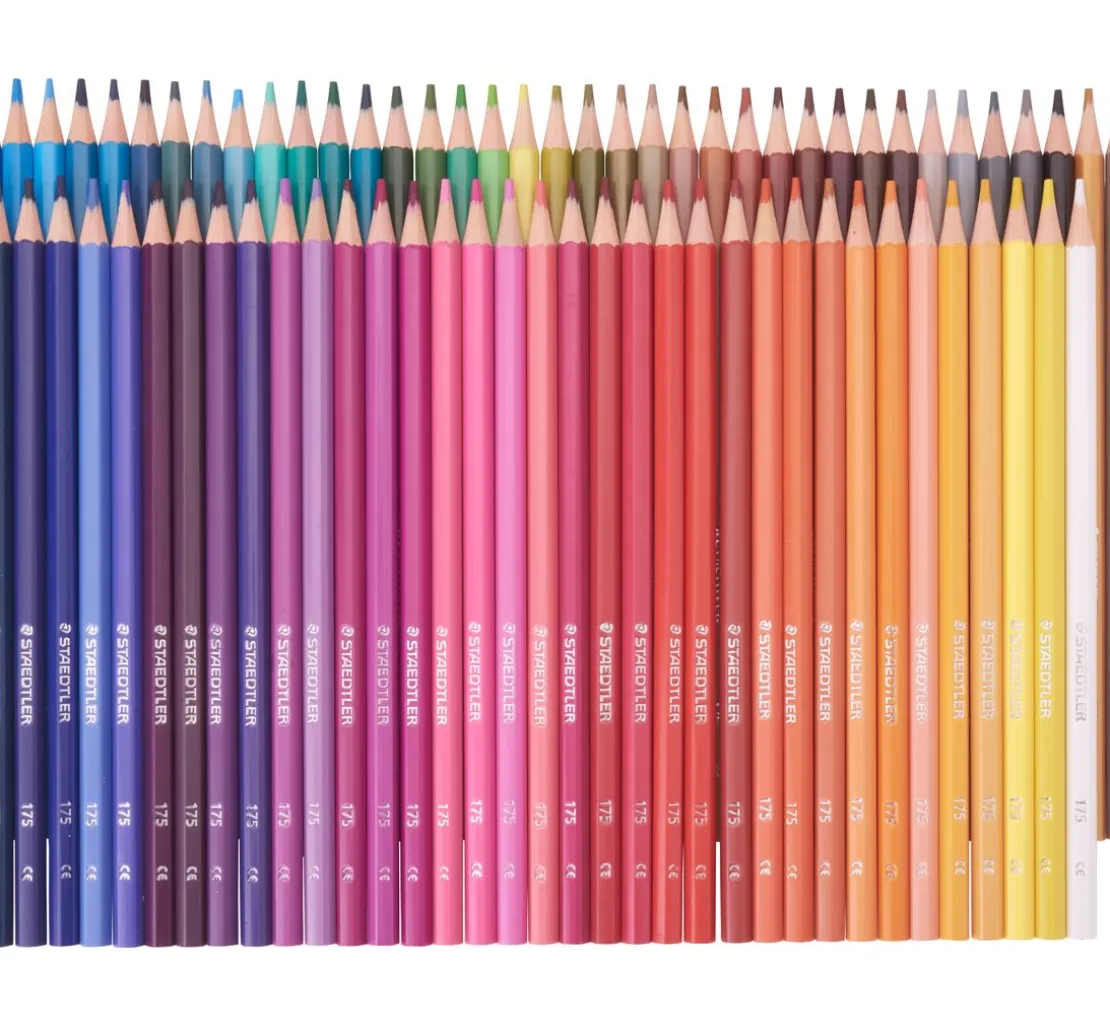 Farbenfrohe Buntstifte in einer Metallbox von STAEDTLER. Die Stifte liegen dank des Sechskantformats gut in der Hand. Der Schaft der 72 Farben ist in Minenfarbe glänzend dekoriert. Mit einem Standardspitzer lassen sich die Stifte leicht anspitzen. Die Buntstifte entsprechen der Spielzeugrichtlinie DIN EN 71 und sind daher kindgerecht.