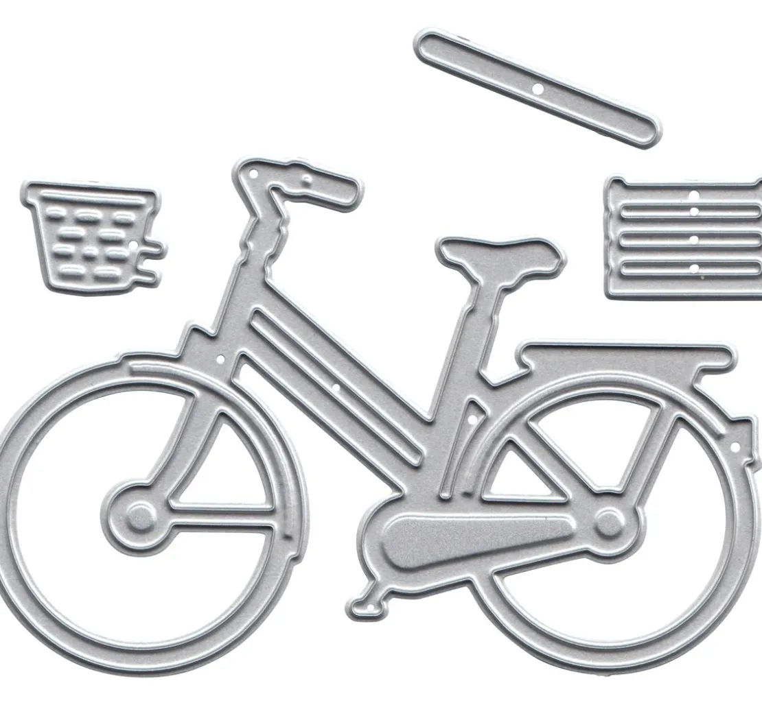 Wunderschöne Stanzschablone „Fahrrad mit Korb“ aus Metall für alle gängigen Stanz- und Prägemaschinen. Das Fahrrad hat eine Größe von ca. 8,2 x 5,5 cm.