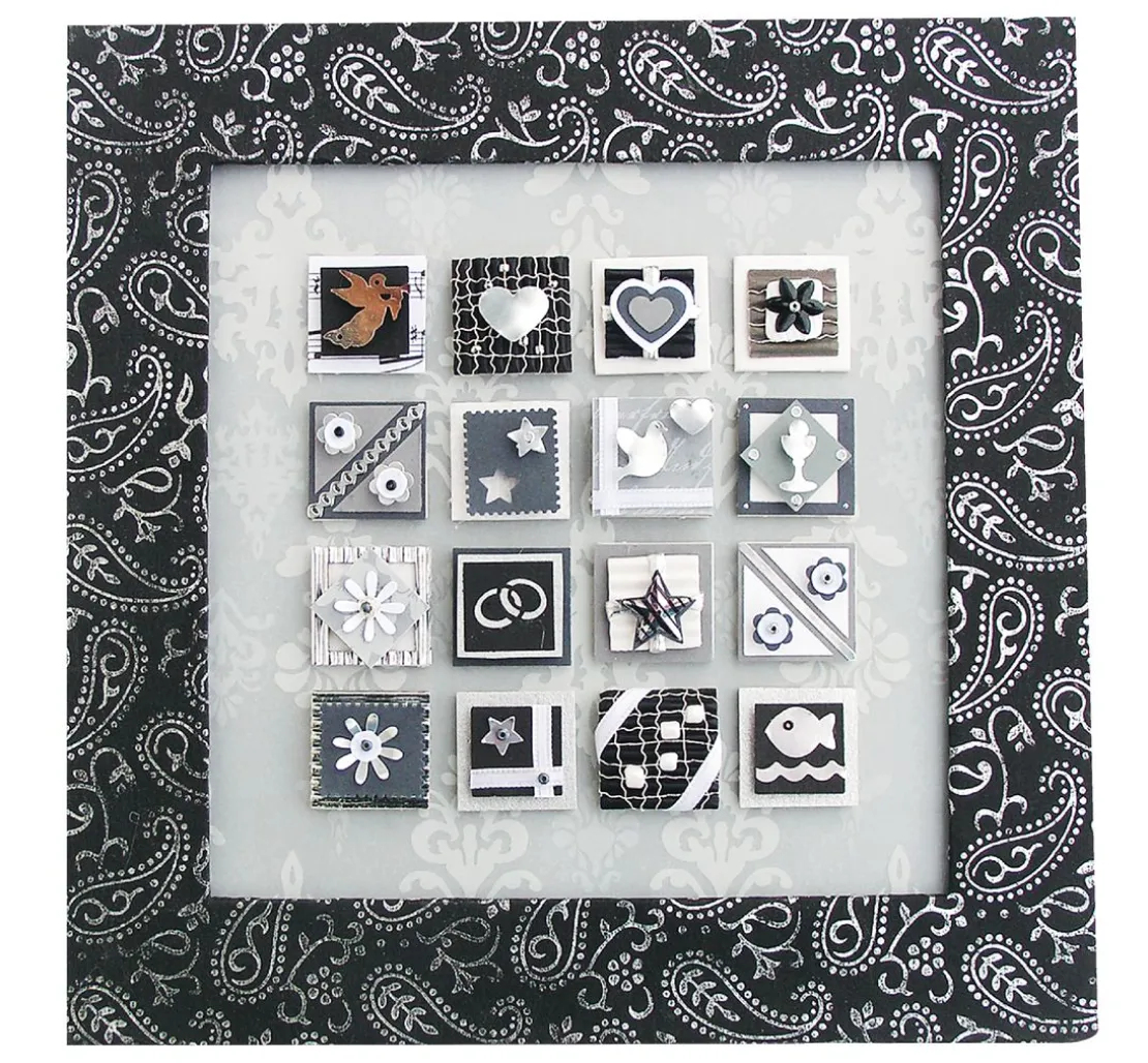 Die Stanzteile „Inchies„ sind kleine, quadratische, weiße Blanko-Stanzteile aus 2 mm starkem Karton.