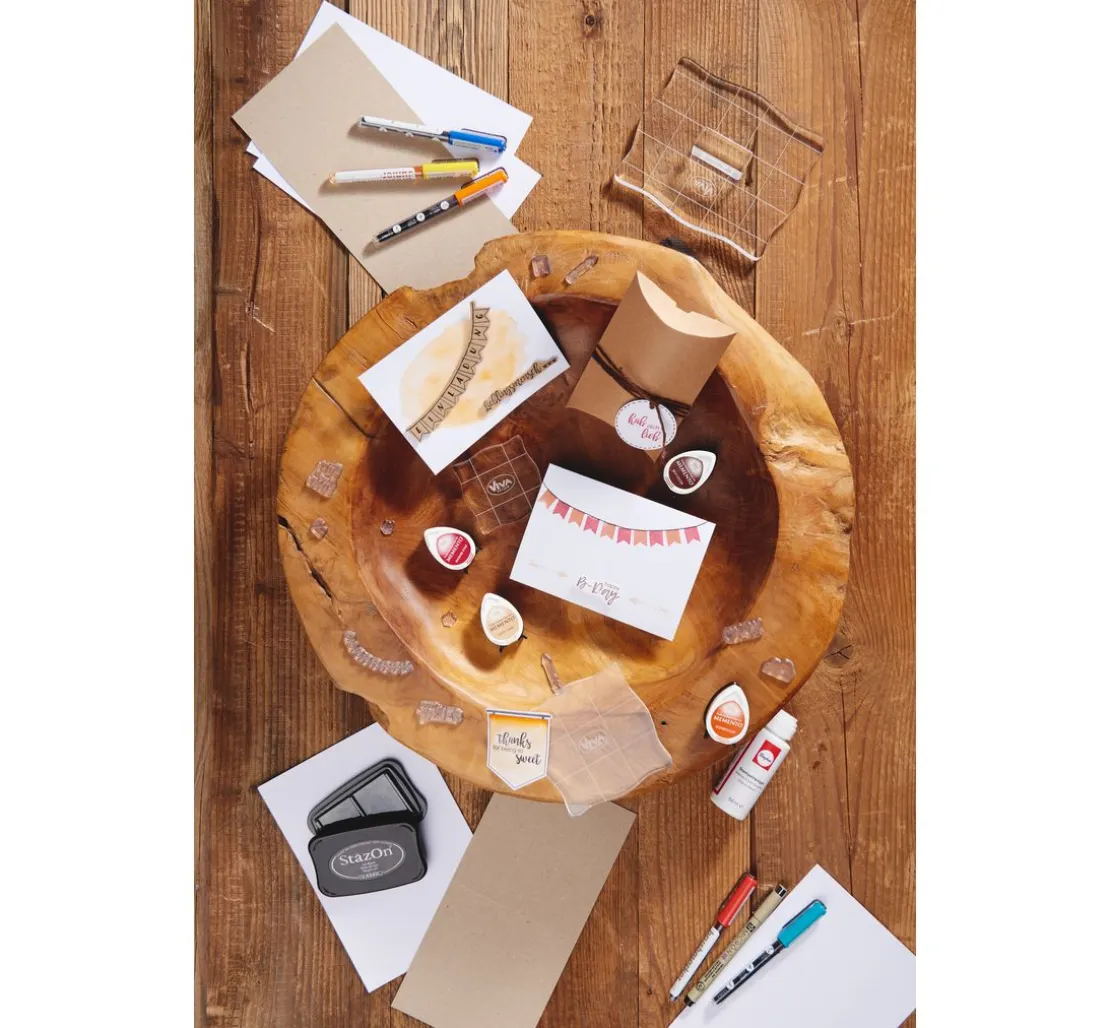 Das Stempelkissen-Set „Canyons“ enthält 4 Stempelkissen in wundervollen Farben. Die Stempelkissenfarbe ist schnell trocknend und auf Wasserbasis. Die Stempelkissen eignen sich nicht für die Embossingtechnik.