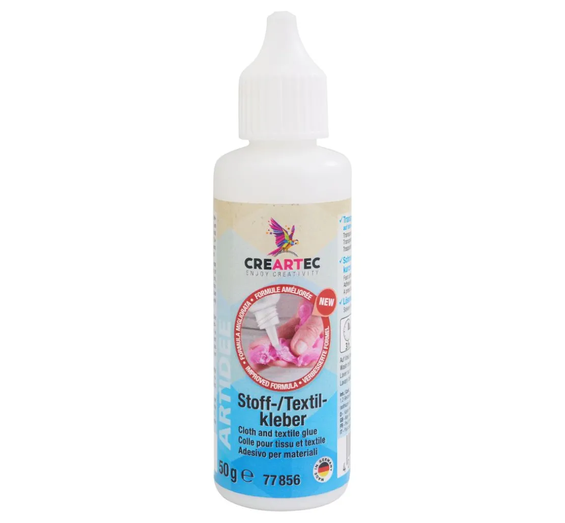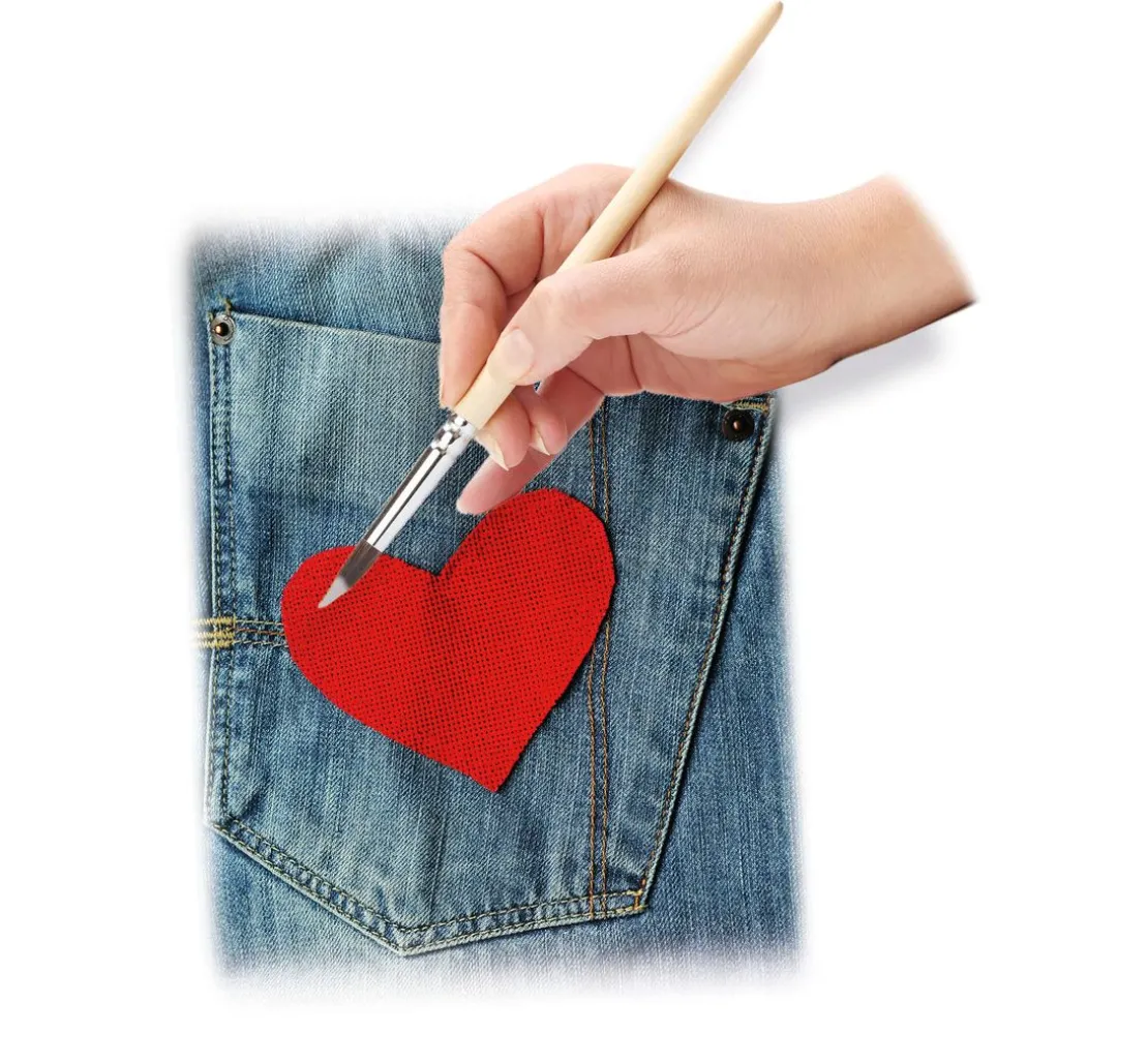 Einige Textilien werden von dem Textilkleber durchnässt. Nach dem Trocknen ist die Verklebung transparent und sichert einen festen Halt. Zum Verarbeiten die Klebeteile einfach für einige Sekunden fest zusammendrücken. Die Verklebung erfolgt sofort nach dem Auftragen und ist komplett nach 2-3 Stunden beendet.