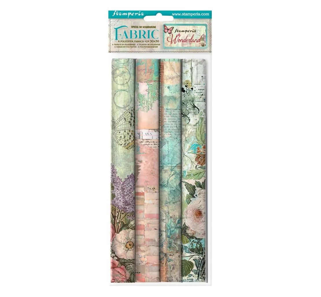 Tauche ein in eine zauberhafte Welt mit dem Stoffpaket „Wonderland“ von Stamperia. Vier Designs mit großflächigen Motiven wie Blumen, Schmetterlingen, Schriften und Ornamenten bieten dir unendliche Möglichkeiten für deine kreativen Projekte. Ob Scrapbooking, Grußkarten, Geschenkverpackungen oder andere Bastelarbeiten – dieses Stoffpaket ist ein Must-Have für alle DIY-Fans.